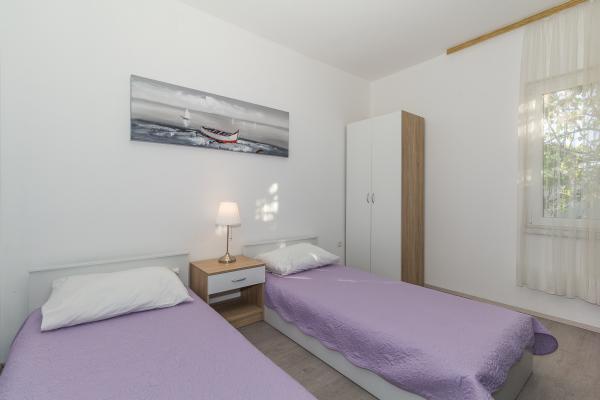Teljesen felújított és berendezett apartmanok egy csendes részén Biograd. Mindössze 50 méterre a bevásárlóközponttól és egy játszótér, és egy 5 perces sétára a strandtól. Az apartman található a földszinten egy udvar, és alkalmas az idősek és az emberek kisebb testi fogyatékos. Az ár tartalmazza az idegenforgalmi adót, a légkondicionáló és használata mosógép. Az a lehetőség, a két helyiség fürdőszobával egy nagyobb csoport. Mi a találkozó első vendégek és élvezni fogja a varázsa a Biograd.