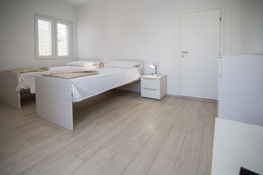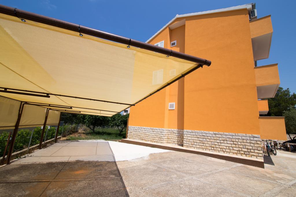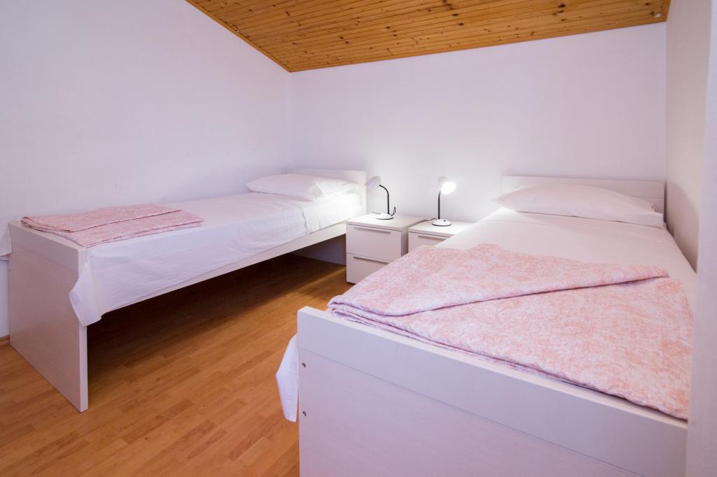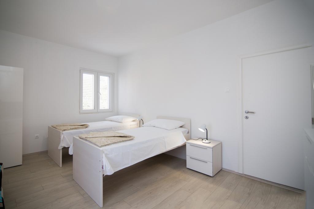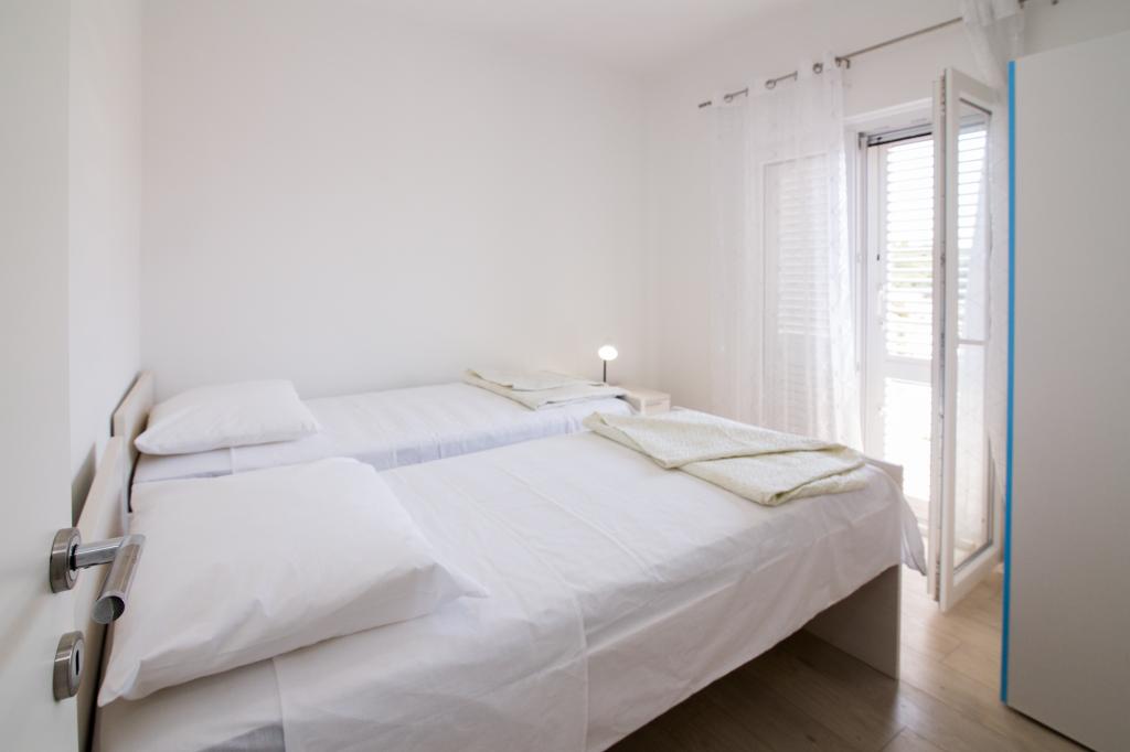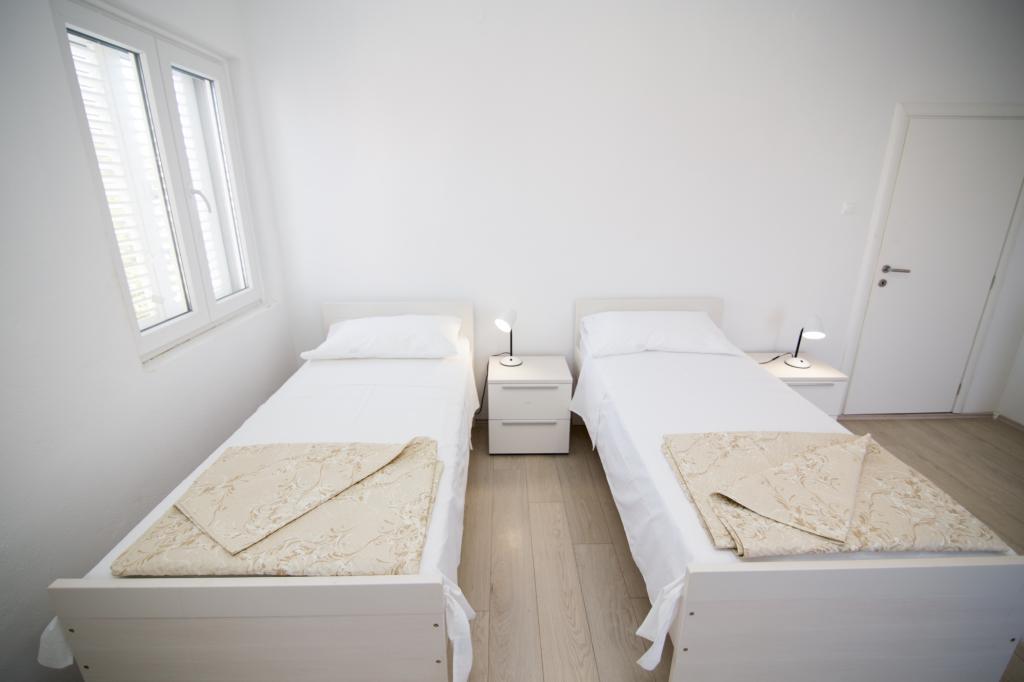 A Jadran apartmanok egy csendes apartmankomplexumban találhatók Biograd na Moru Kumenatban, távol a városközponttól, egy fenyvesekkel körülvett turistaszálló mellett. A városközpont 10 perces sétával elérhető a tengerparti sétányon. Az azonos nevű Kumenat strandtól körülbelül 100 méter, a második homokos strandtól, Soline-tól pedig körülbelül 300 méter távolságra van. Az apartmanok egy családi ház második és harmadik emeletén helyezkednek el, kilátással a tengerre és a szigetekre, összesen 65 m2 alapterülettel, két különálló szobából áll, ahol ágyak és pótágyak, valamint egy további szobából két ággyal, egy konyha-nappaliból, előszobából, fürdőszobából és két teraszból. Minden apartman 2 szobával és egy pótággyal rendelkezik, így a szállás 5 fő részére alkalmas, valamint a ház elején és hátulján két terasz található, ahol élvezheti a reggeli madárcsicsergést, a tengerre és a szigetekre nyíló kilátást, valamint a romantikus naplementéket. Az éjszakák száma a vendégek választásától függ, az árlista az árlista gombra kattintva érhető el. Üdvözöljük!