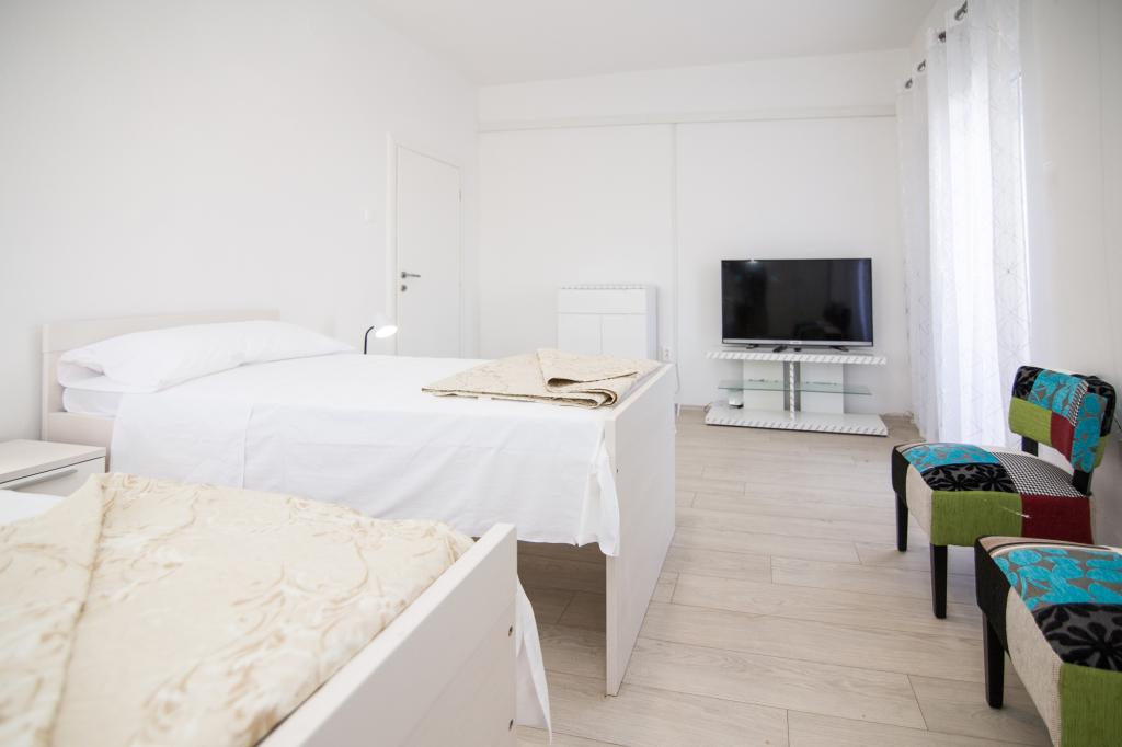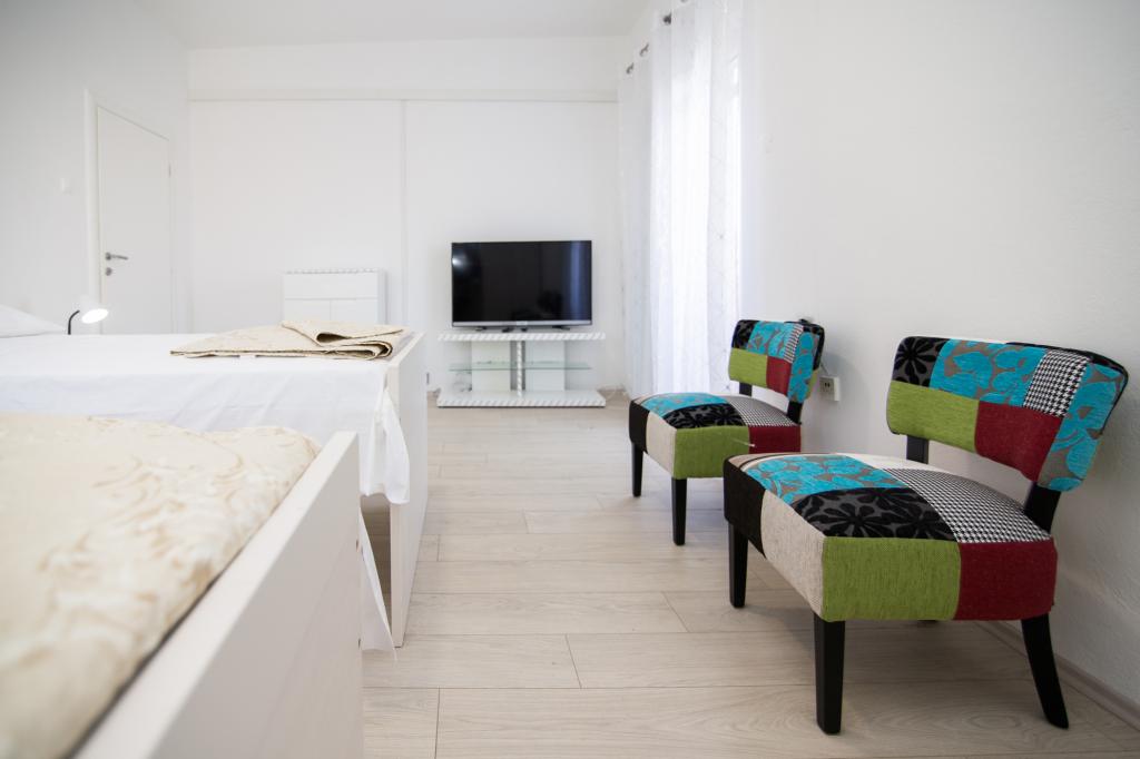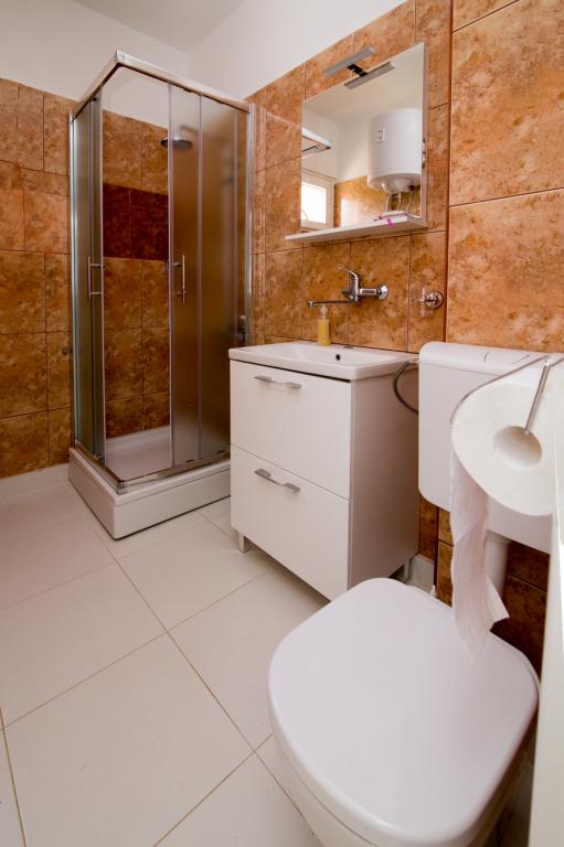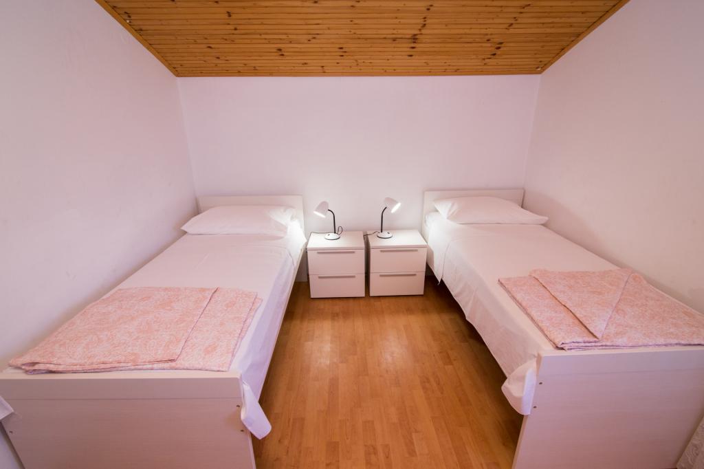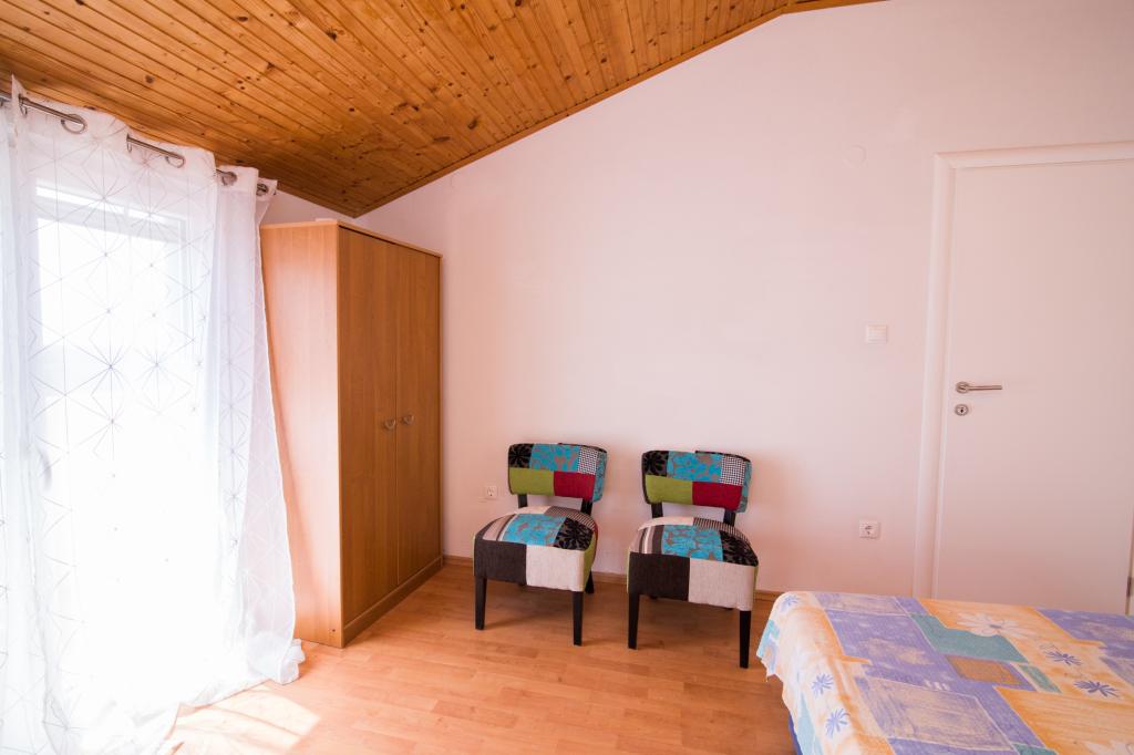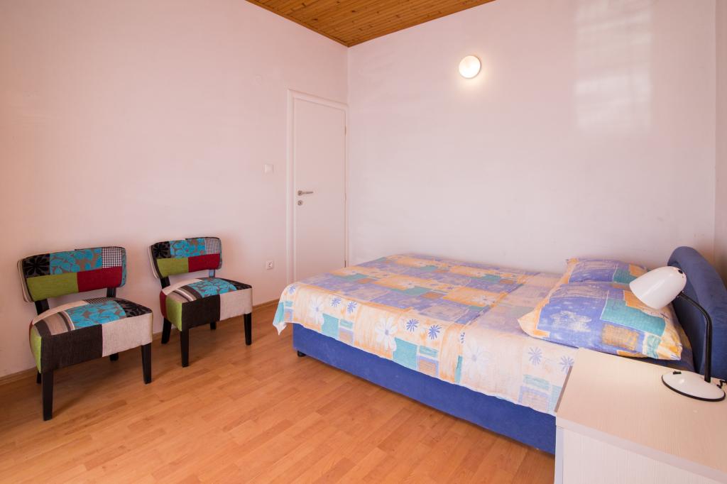 A Jadran apartmanok egy csendes apartmankomplexumban találhatók Biograd na Moru Kumenatban, távol a városközponttól, egy fenyvesekkel körülvett turistaszálló mellett. A városközpont 10 perces sétával elérhető a tengerparti sétányon. Az azonos nevű Kumenat strandtól körülbelül 100 méter, a második homokos strandtól, Soline-tól pedig körülbelül 300 méter távolságra van. Az apartmanok egy családi ház második és harmadik emeletén helyezkednek el, kilátással a tengerre és a szigetekre, összesen 65 m2 alapterülettel, két különálló szobából áll, ahol ágyak és pótágyak, valamint egy további szobából két ággyal, egy konyha-nappaliból, előszobából, fürdőszobából és két teraszból. Minden apartman 2 szobával és egy pótággyal rendelkezik, így a szállás 5 fő részére alkalmas, valamint a ház elején és hátulján két terasz található, ahol élvezheti a reggeli madárcsicsergést, a tengerre és a szigetekre nyíló kilátást, valamint a romantikus naplementéket. Az éjszakák száma a vendégek választásától függ, az árlista az árlista gombra kattintva érhető el. Üdvözöljük!