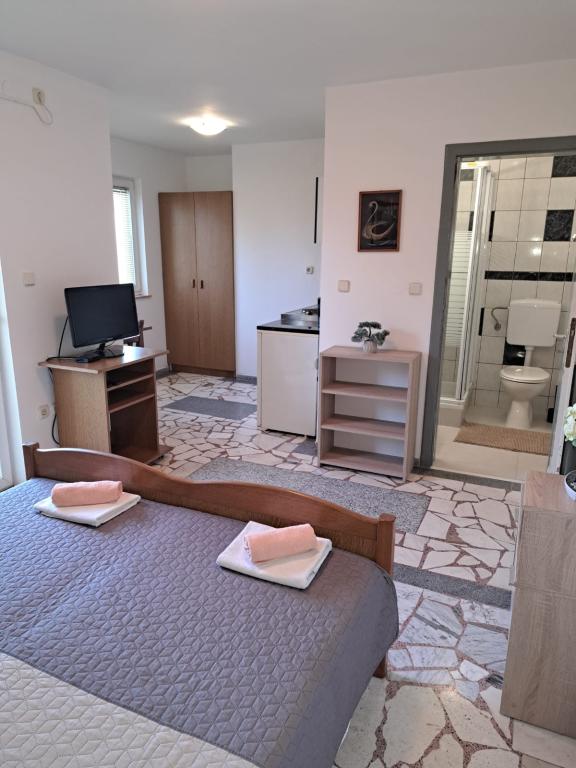 Kiváló és kellemes szállás a teljes nyaraláshoz a tengerparton töltött nehéz nap után. Ami a szállást illeti, dicsérhetem a tulajdonos rendezettségét, kényelmét és teljes ellátását a vendéggel szemben. Azt is megemlíthetem, hogy a feleségemmel nagyon jól éreztük magunkat, és ha Isten úgy akarja, biztosan eljönünk egy évre. Üdvözlet Jelenának és Nikicának.