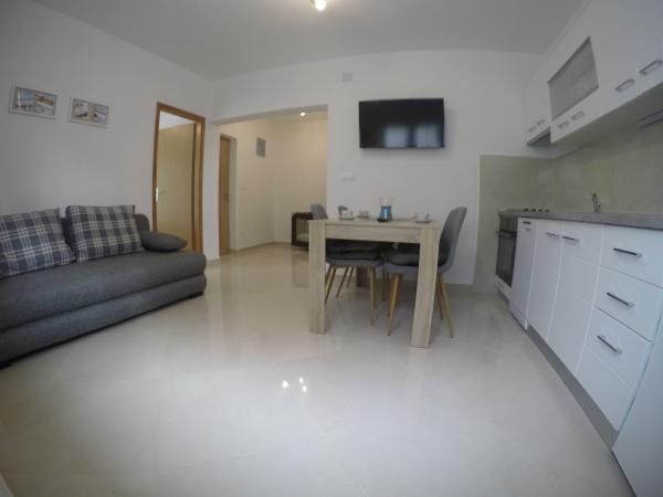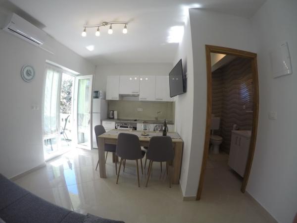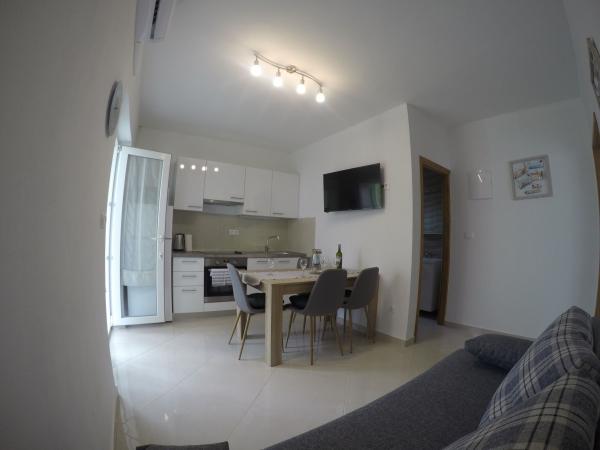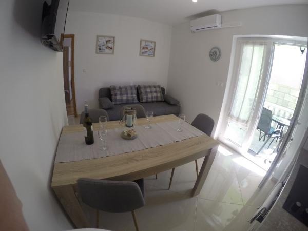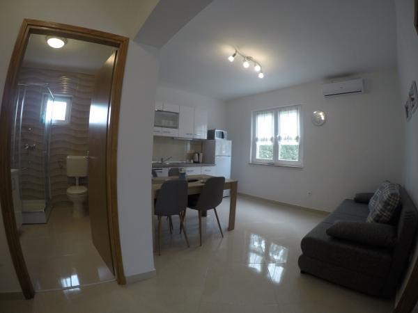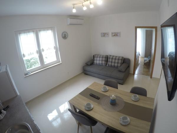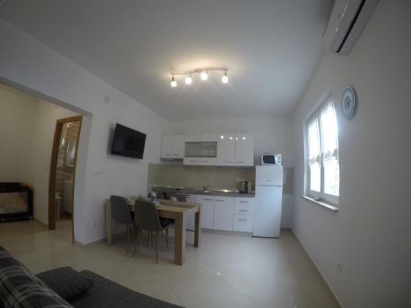 Az Apartments Maslina a város csendes részén található, kb. 10 perc sétára a legközelebbi Soline strandtól. A háznak 4 apartmanja van, 3 x méret 40 m2 erkéllyel és terasszal, 1 x 45 m2 erkéllyel. Minden apartman légkondicionálóval, ingyenes WIFI-vel, műholdas csatornákkal, / TV-vel, parkolóhellyel és grillezési lehetőséggel az udvaron, valamint kisgyermekek számára alkalmas létesítményekkel rendelkezik. Nagyobb családok számára több üres lakás bérelhető egyszerre, és kevesebb ember számára az ár kedvezőbb.