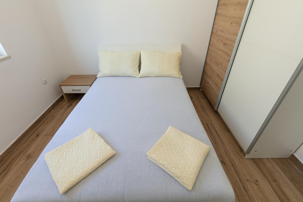 Értékelésem 8/10. A település csendes, a strand viszonylag közel van. A lakás rendezett, tiszta és elég tágas. Túl kicsi a konyha és nagyon rossz a villanytűzhely, így kétszer annyi időbe telt megfőzni az ebédet, mint ha gáz lenne. A lakás terasza remek, elég nagy és délután állandóan árnyékban van. A lakásban nem volt ruhanemű- és törölközőszárító állvány, hanem csak egy kis bővítmény a terasz falán, ami nem elegendő. 4 kisebb törölközőt kaptunk.