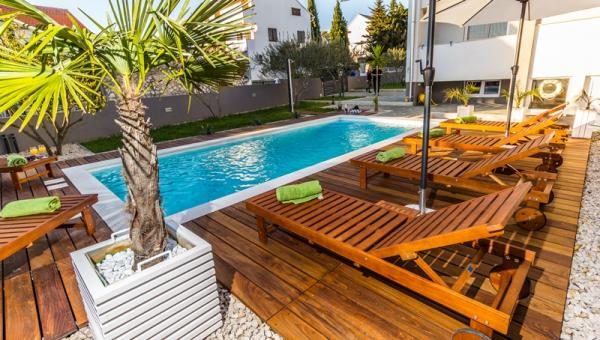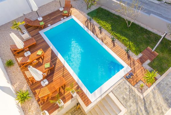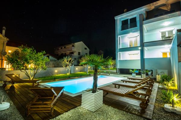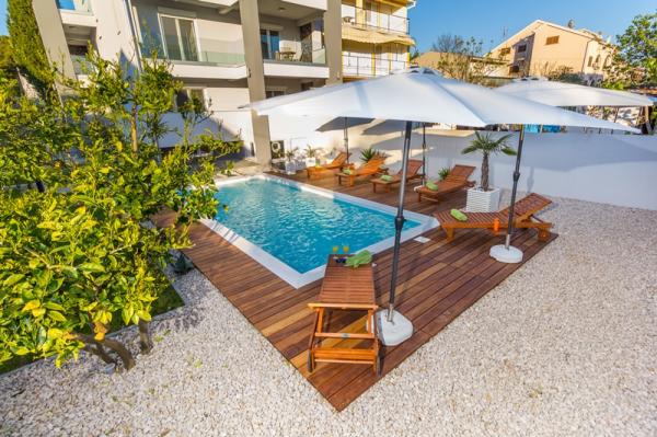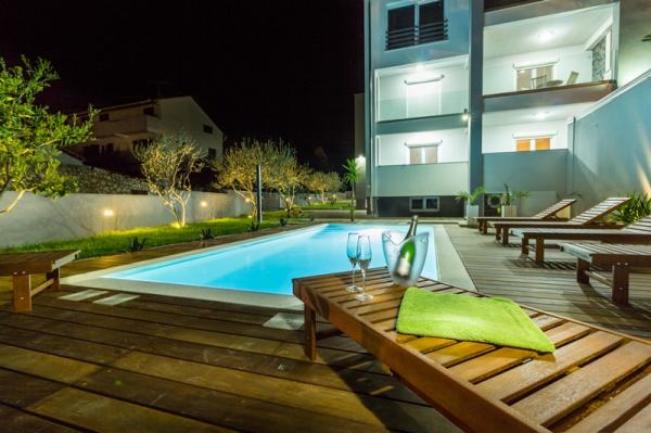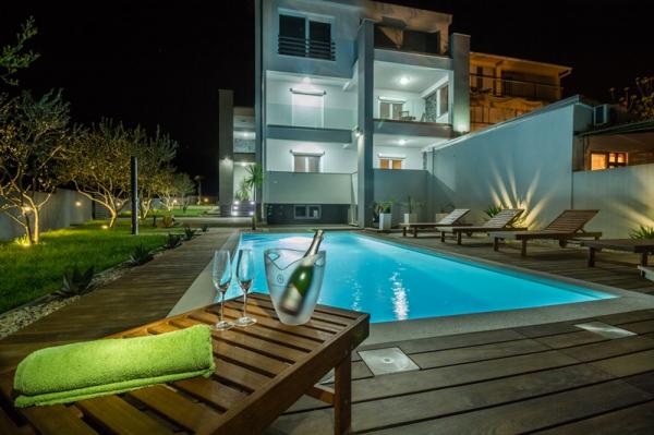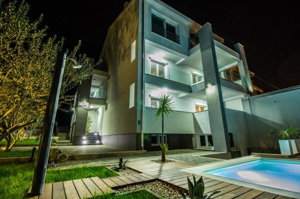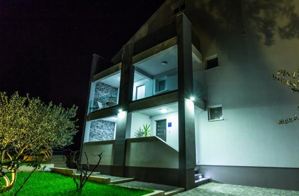 Kínálunk négy új, teljesen felszerelt, modern apartman egy csendes részén Biograd. Minden apartman egy hálószoba, konyha és étkező, nappali és fürdőszoba. Ideális 2-4 fő részére. Mindegyik fel van szerelve minden szükséges kényelmi: légkondicionálás, műholdas TV-vel, vezeték nélküli, rádió, sütő. . Minden apartman tartalmaz ágyneműt és törölközőt. A ház körül egy nagy kert medencével és relaxációs terület, amely miatt ez a hely ideális választás mind a gyermekes családok és a fiatal párok. A kertben grillező áll rendelkezésre, és minden lakáshoz saját parkoló.