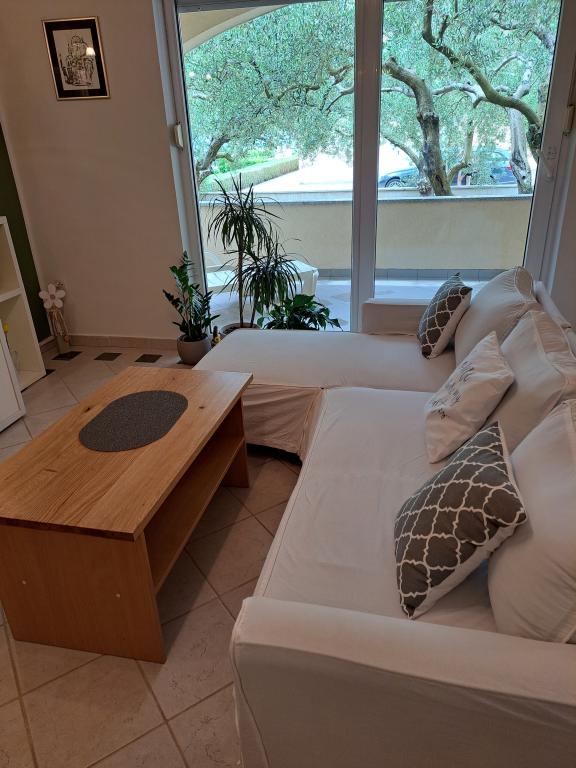 Lakossági adót az az ár tartalmazza. Foglalási visszaigazolás dokumentum foglalás eseténA lakás nagyszerű helyen található, a strand nagyon közel van. Van egy bolt a közelben, egyébként 15-20 perc séta, és a városközpontban vagy, ahol minden megtalálható, piac, pékség, üzletek, éttermek... A ház előtt egy nagy parkoló található az olajfák árnyékában. A lakás rendkívül tiszta, tágas, nagyon jó elrendezésű, mindennel felszerelt, amire szükséged lehet, különösen a konyha. Nagy erkély, gyönyörű kilátással az olajfákra és a tengerre. Kényelmes ágy. Minden még szebb élőben, mint a képeken. A házigazdák barátságosak és kommunikatívak. Kiváló!