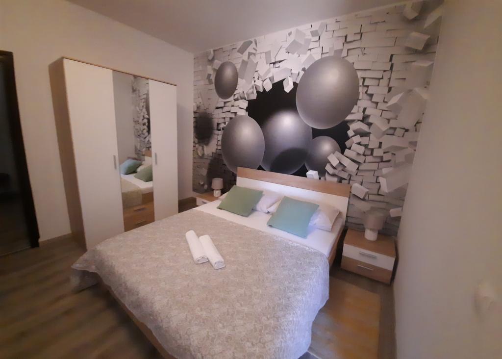 Az apartmanok egy magánházban találhatóak, minden járműnek kerttel, bekerített parkolóval, grillezési lehetőséggel. (vidámpark, éjszakai klubok, standok, üzletek, játszóterek) , központ..) minden 5 percnyi sétával elérhető. Tehát nem kell beindítania autóját, kivéve a nagyobb bevásárlóközpontokban, mint például a Lidl, a Kaufland stb., amelyek a város bejáratánál találhatók. 1.App A4-es kétszobás lakás igény szerint bővíthető nappalival és 30 m2-es terasszal, mosogatógéppel és ruhamosó géppel és két klímaberendezéssel 2.App 2+2-ből áll hálószoba és egy nagy nappali memóriahabos kihúzható kanapéval és két felnőtt kényelmesen aludhat, és két erkély is van hozzá. 3. A2+1 apartman, kényelmes apartman franciaággyal, szükség esetén kihúzható kanapéval, erkélyes is. Minden alkalmazás teljesen felszerelt (komplett edények és kiegészítők, wc papír, folyékony szappan, mosogatószer, szivacs, törölköző...