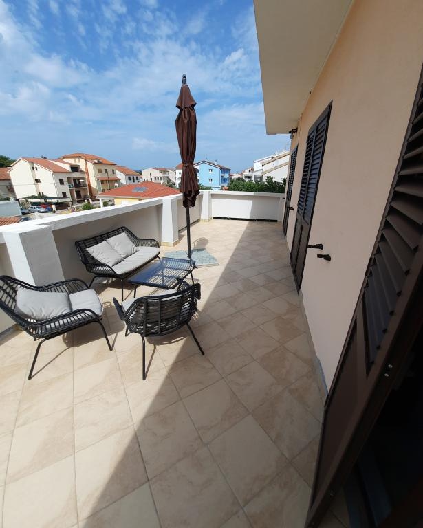Az A4+1-es apartmanban szálltunk meg. A felújítás friss, a bútorok jó minőségűek. Minden tiszta és rendezett volt. Rengeteg tárolóhely volt a szekrényekben. A hűtőszekrény megfelelő méretű volt. A konyha nagyon jól felszerelt volt – rengeteg tányér, evőeszköz, spatula, edény és így tovább. A terasz nagyon tágas volt. Bármilyen kérdéssel üzenetet tudtunk küldeni a házigazdának, és mindent gyorsan megoldott. A legközelebbi strand 6-7 perc sétára, az élelmiszerbolt pedig mindössze 2 percre található. Nagyon elégedettek voltunk a tartózkodásunkkal, és nagyon ajánljuk ezt a helyet!