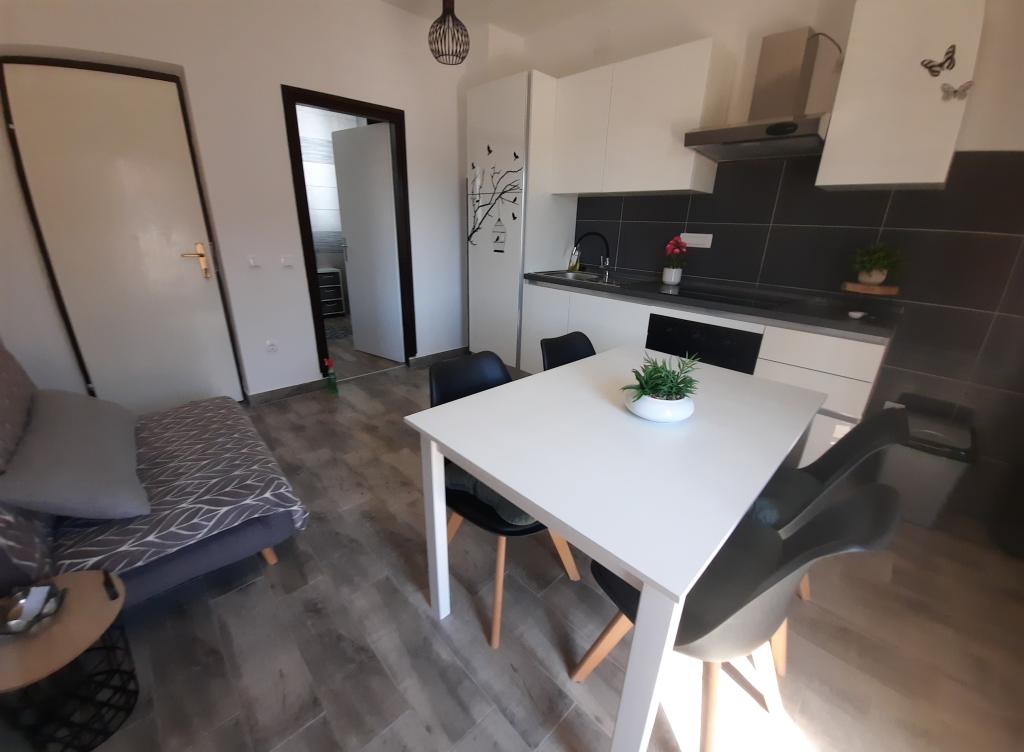 Lakossági adót az az ár tartalmazza. Foglalási visszaigazolás dokumentum foglalás eseténKét felnőtt gyerekkel voltunk egy hétig nyaralni a főszezonban. Nagyon elégedett voltam a tulajdonossal való kommunikációval, bár nem sikerült találkoznunk. Az anyukája azonban mindenben helyettesítette őt. Az apartman elhelyezkedése kényelmes, az 1. emeleten található, 7 percre a Dražica strandtól. Az apartman érkezéskor tiszta volt, apró részletekkel díszítve, amelyek kellemesebbé teszik az itt-tartózkodást. Mindenből volt elég: edények, evőeszközök, poharak, törölközők, minden, ami a háztartáshoz szükséges, beleértve a tisztítószereket és a rongyokat is. Talán egy kisebb szekrény is helyet kapott volna az élelmiszereknek. A fürdőszoba tágas, ahogy mondtam, mindennel felszerelt, amire szükséged lehet, beleértve a hajszárítót is. A szobák összenyithatók (az elsőből a másodikba jutsz) és tágasak, a szekrények elég nagyok. Az ágyak kényelmesek, minőségi matracokkal. Minden szobából külön ajtó nyílik a teraszra. A terasz nagy, az étkezőasztal kihúzható, de mi bent ettünk a meleg és a kényelem miatt. A napellenző és a napernyő kellő árnyékot ad. A lakás 4 főnek elég nagy, 5-nek már nehéz lenne. A fotel, aminek ággyá kellene kinyúlnia, nem alkalmas alvásra. A másik szobában mennyezeti ventilátor van, ami nem igazán helyettesíti a légkondicionálót. Így csak egy légkondicionáló van, az étkezőben. Mi úgy aludtunk, hogy a szobák közötti ajtó nyitva volt, így némi hideg levegő átjutott a másik hálószobába. Ez a két ajánlás is a házigazdának, Silvijának. Az ár elég magas, de elégedettek voltunk, mert elegünk volt a 70-es években fagyos lakásokból. Ár = kényelem. Ajánljuk.