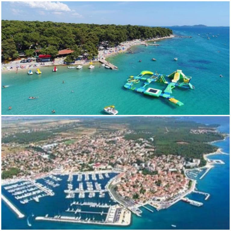 BIOGRAD NA MORU kiadó újonnan felújított lakások, melyekben szoba, konyha, fürdőszoba, Wi-fi, tv, légkondi található Belváros Pláza 150m Bolt, posta, orvos, gyógyszertár 20-50m Buszpályaudvar 50m