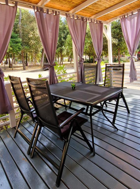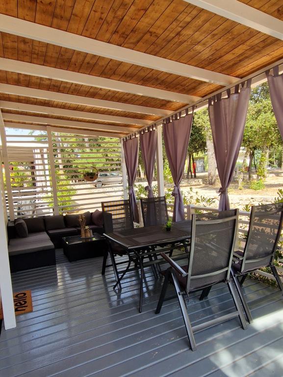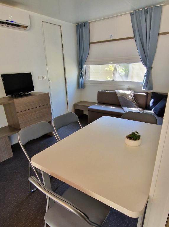 Üdvözöljük az ARIA lakókocsiban, amely a gyönyörű Soline Park kempingben található, egy sűrű fenyves árnyékában, közvetlenül az Adriai-tenger egyik legszebb partján. A helyszín ideális kombinációját kínálja a természet békéjének és a közelségnek minden szolgáltatáshoz - Biograd központja mindössze 15 perc alatt elérhető egy kellemes sétával a jól karbantartott tengerparti sétányon. A kemping teljes partján kavicsos és homokos strandok, valamint számos kávézó, étterem, üzlet és egyéb turisztikai látványosság található. Az ARIA lakókocsi a 693. szám alatt található, és teljesen felszerelt a gondtalan és kellemes családi tartózkodáshoz. Két külön hálószobával, egy kihúzható ággyal ellátott nappalival, egy étkezős konyhával és egy tágas, gyermekek számára biztonságos terasszal rendelkezik. Légkondicionáló, TV, saját parkolóhely, mosógép. A szálláshely különösen alkalmas gyermekes családok számára - a terasz kerített, a környezet pedig békés és természetes. A kempingben vidámpark, játszótér, gyerekklub, valamint különféle nappali és esti animációs programok is találhatók.
