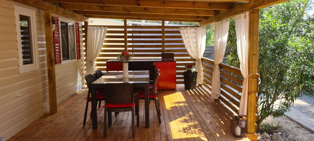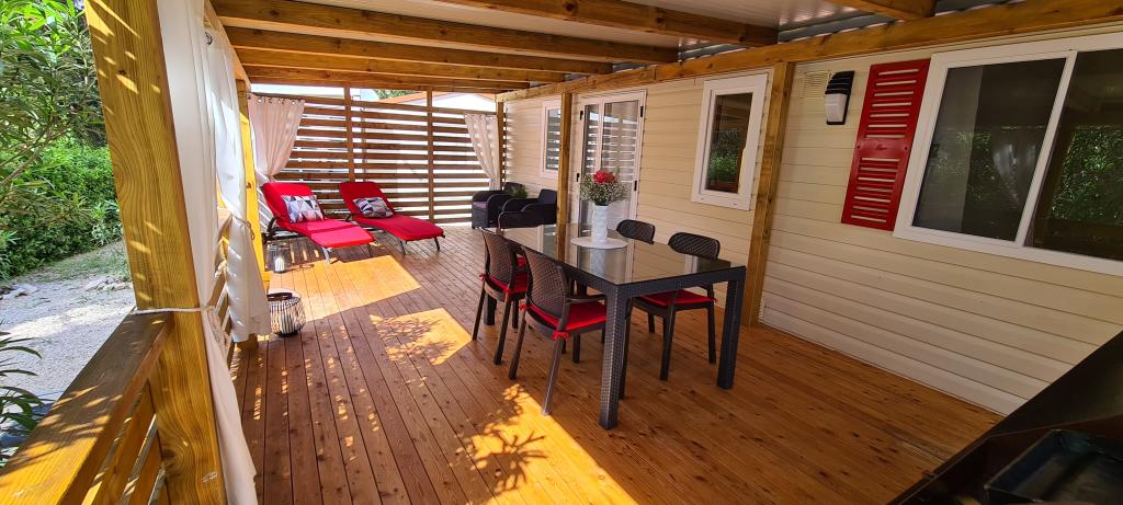A Blue Wave Mobile Home II a Soline-öböl első sorban található, védve a látványtól. Teljesen felszerelt mobilház két külön hálószobával, gardróbbal, nappalival extra kihúzható ággyal (135x190), teljesen felszerelt konyhával légkondicionálóval és nagy terasszal. A teraszon grillező, étkezőasztal és kényelmes nyugágyak találhatók. Vezeték nélküli internet-hozzáférés a szálláshely egész területén ingyenes.