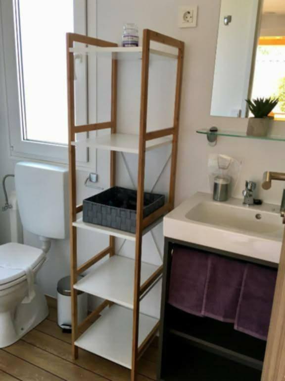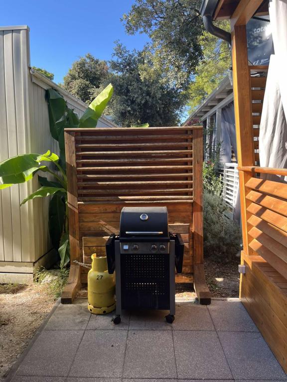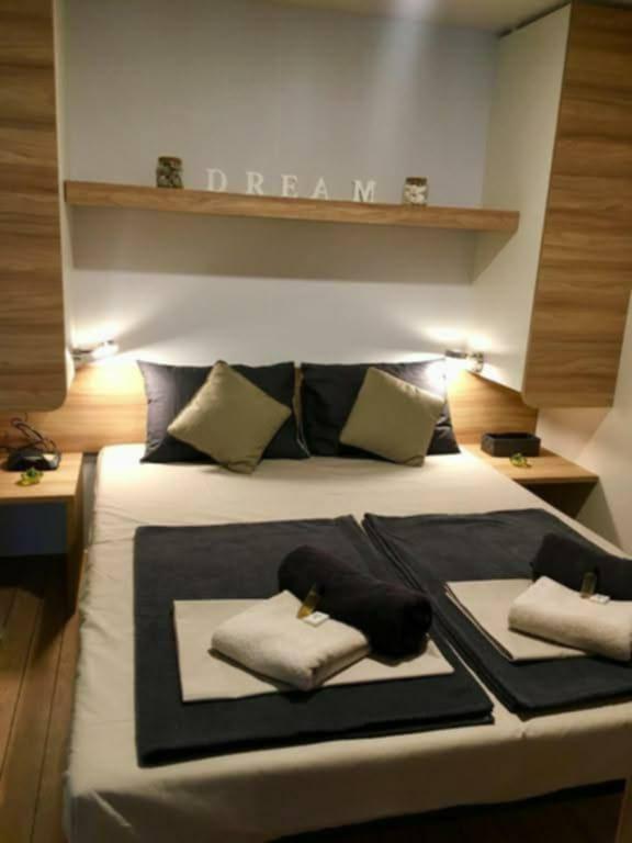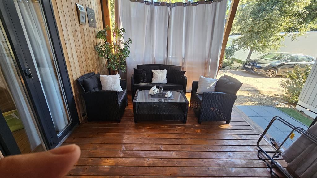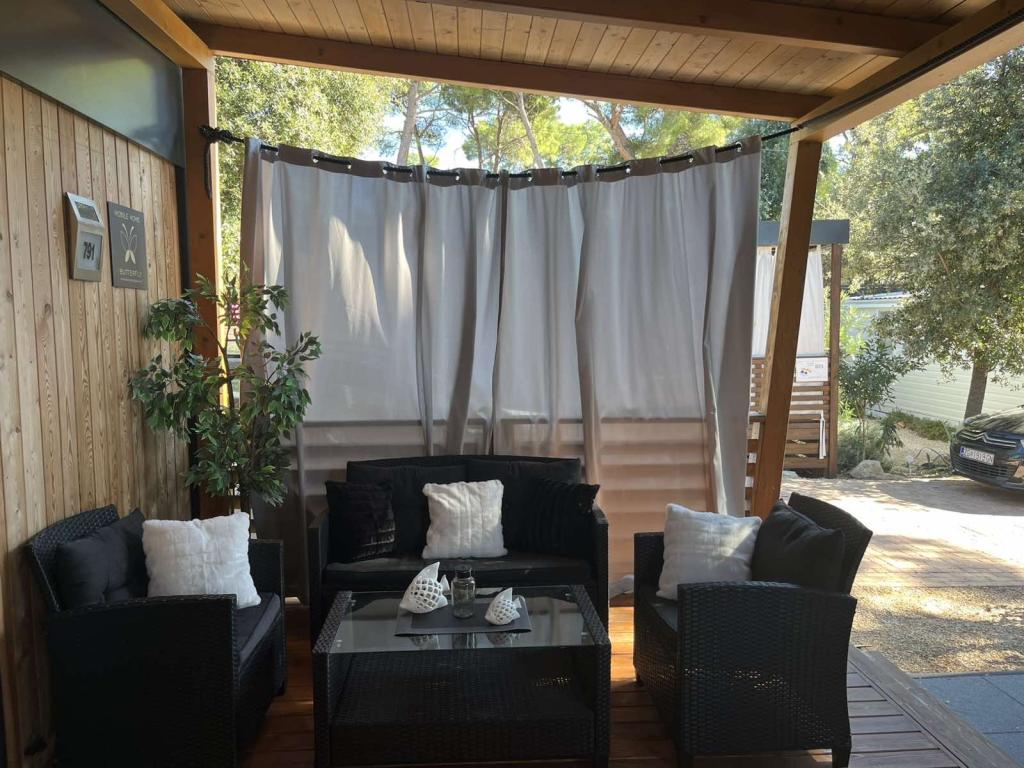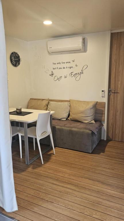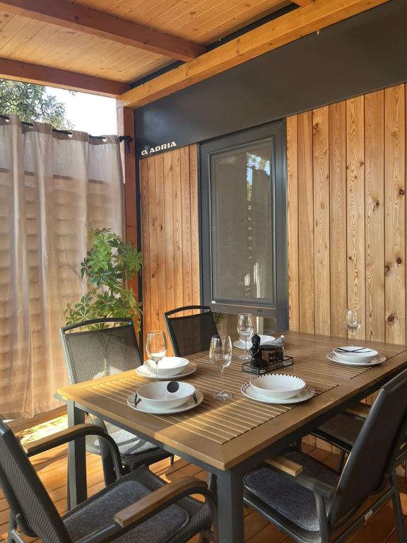 Modern, légkondicionált mobilház a Park Soline kempingben, mindössze pár lépésre a strandtól és 15 perc sétára Biograd központjától. 2 hálószobával, konyhával, nappalival, 2 fürdőszobával és fedett terasszal, kerti bútorokkal. Ingyenes Wi-Fi, parkoló, gyermekprogramok, sportpályák és mediterrán étterem a helyszínen. Tökéletes családok vagy párok számára, akik fenyőfák árnyékában szeretnének kikapcsolódni, közel a főbb látnivalókhoz.