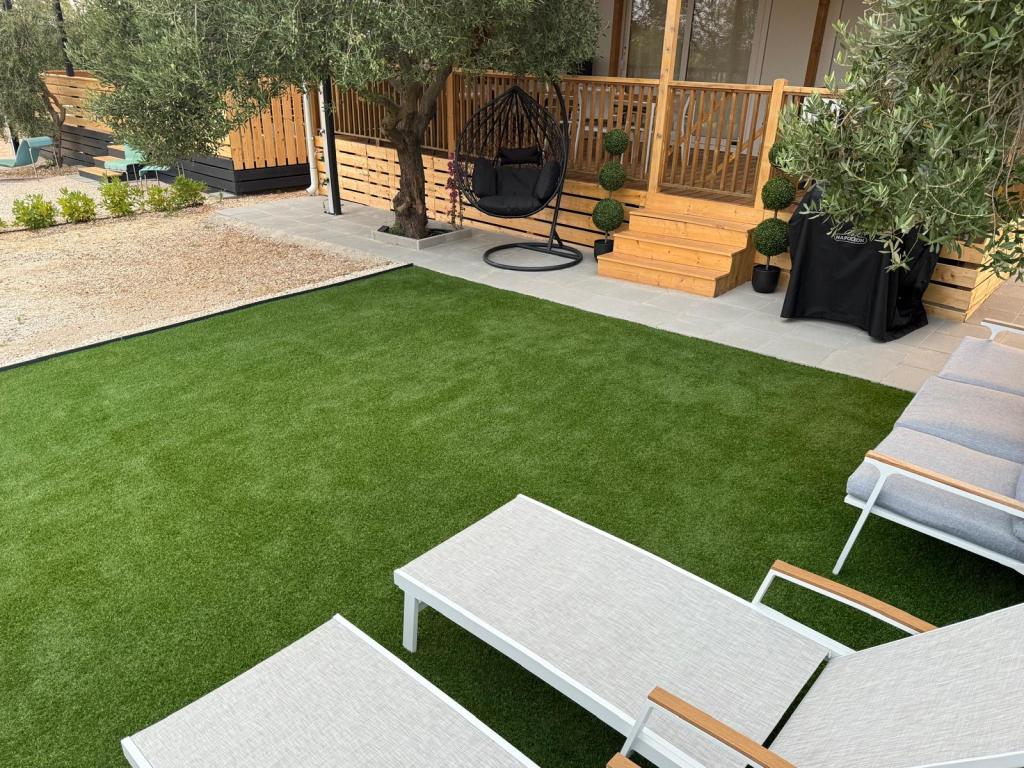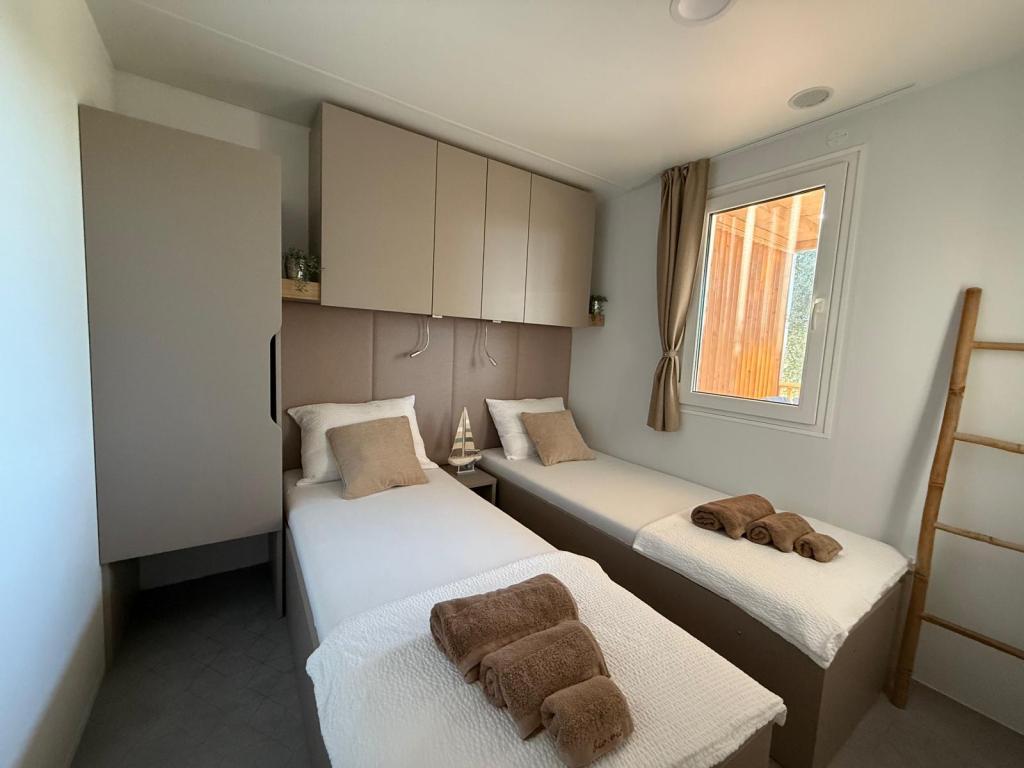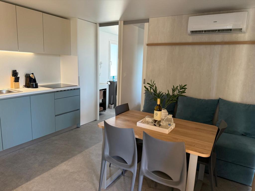 A kék színű Holiday mobilház a Marija kempingben található Biograd na Moruban. Ez az új, tengerre néző mobilház nyugodt környezetet és olajfaligeteket kínál. Teljesen légkondicionált. A központ közelsége lehetővé teszi, hogy gyalogosan vagy kerékpárral nagyon gyorsan elérje Biograd központját. Számos kávézó és étterem mellett a közelben található a Dalmaland kalandpark (4,5 km), a Vransko jezero természetvédelmi park (15 km) és a Krka Nemzeti Park (57 km), valamint Zadar városa.