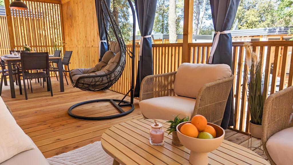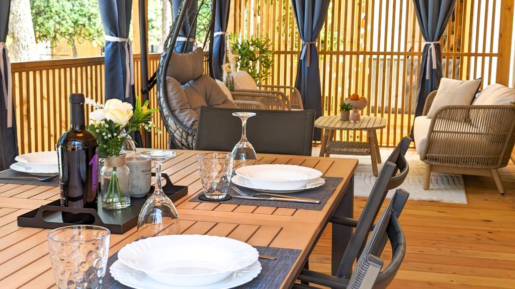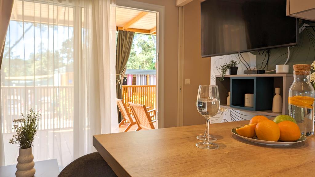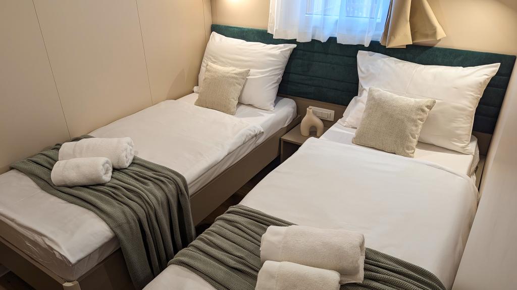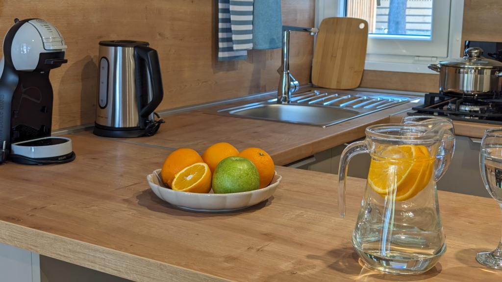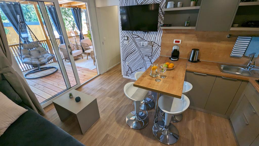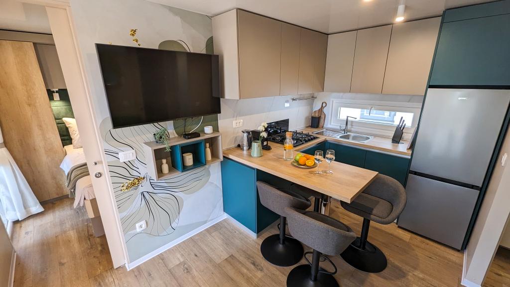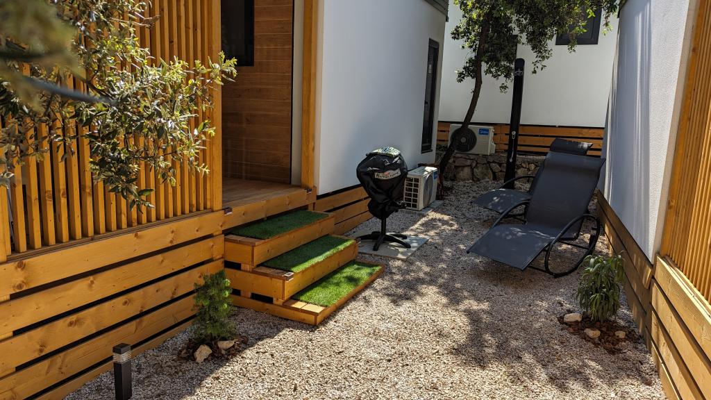 Élvezze a természetet és a kényelmet: Jaki mobilházak a Soline kempingben, Biograd na Moruban. A 4 csillagos kemping csendes részén, fenyőerdőkkel körülvett korszerűen felszerelt mobilházaink akár 6 fő elszállásolására is ideálisak. Élvezze a strand (2-5 perc séta), üzletek és éttermek, valamint a városközpontba vezető sétány (15 perc) közelségét. Ezek a nyaralók 2 hálószobával és 2 fürdőszobával, nappalival, nagy terasszal, étkezőasztallal és társalgóval, valamint teljesen felszerelt konyhával - mosogatógéppel, mikrohullámú sütővel, kávéfőzővel, kenyérpirítóval, turmixgéppel, szabadtéri grillezővel - rendelkeznek. A házban ingyenes wifi, ingyenes parkolás a ház mellett, Smart TV, légkondicionálás, törölköző és ágynemű is biztosított. A tábor számos lehetőséget kínál az egész család számára: gyönyörű homokos és kavicsos strandok, amelyek egészen a városközpontig nyúlnak, mediterrán specialitásokat kínáló étterem, játszótér, sportolási lehetőségek és kerékpárkölcsönzés. A Dalmaland, Horvátország legnagyobb tematikus vízi parkja 15 perces autóútra fekszik.