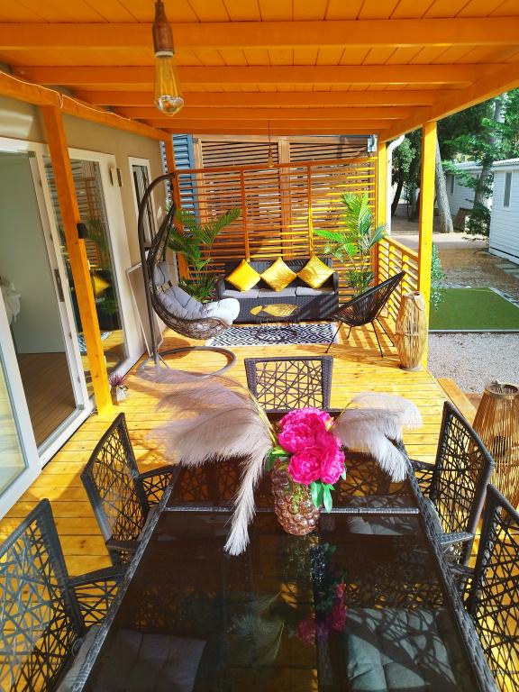 A Nancy mobilház a Camp Soline területén található Biograd na Moruban, mindössze két percre a gyönyörű kavicsos strandtól. Két szobával, az egyikben egy ágy (160 x 200 cm) és saját WC/fürdőszoba található. A második szobában két ágy található (80 x 200 cm), amelyek könnyen összeilleszthetők egy nagyobb ággyá. Van benne nappali, teljesen felszerelt konyha, plusz wc/fürdőszoba, mosogatógép, mikrohullámú sütő, fagyasztó, kávéfőző és egy kétszemélyes ággyá alakítható kanapé. A házban hat fő (4 2) fér el. A gyönyörű és tágas teraszon pihenhet, élvezheti a naplementét és egy jó pohár bort. Kampóban a háztól mindössze 200 méterre van egy étterem, valamint különféle kávézók és éttermek, valamint játszóterek találhatók a gyerekek számára. A legfiatalabb vendégeink számára napi animációkat tartanak. Biograd központja sűrű fenyőerdőben, árnyékot adó ösvényen érhető el, mindenféle látnivalóval a legkisebbeknek és a felnőtteknek egyaránt.