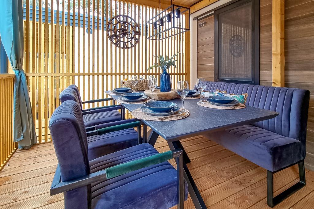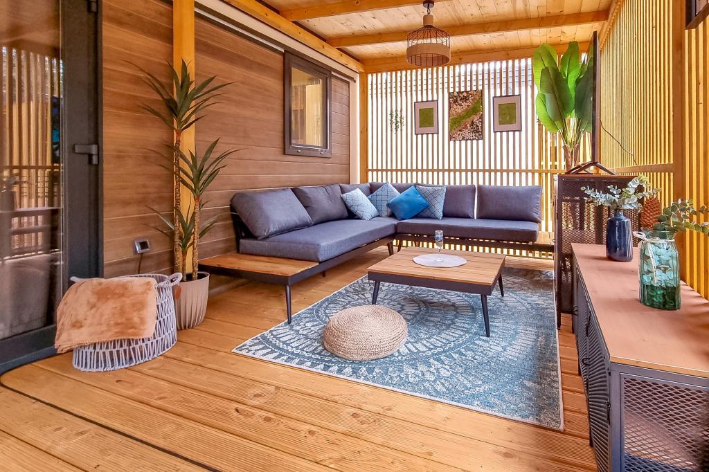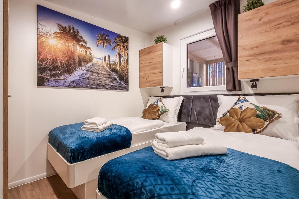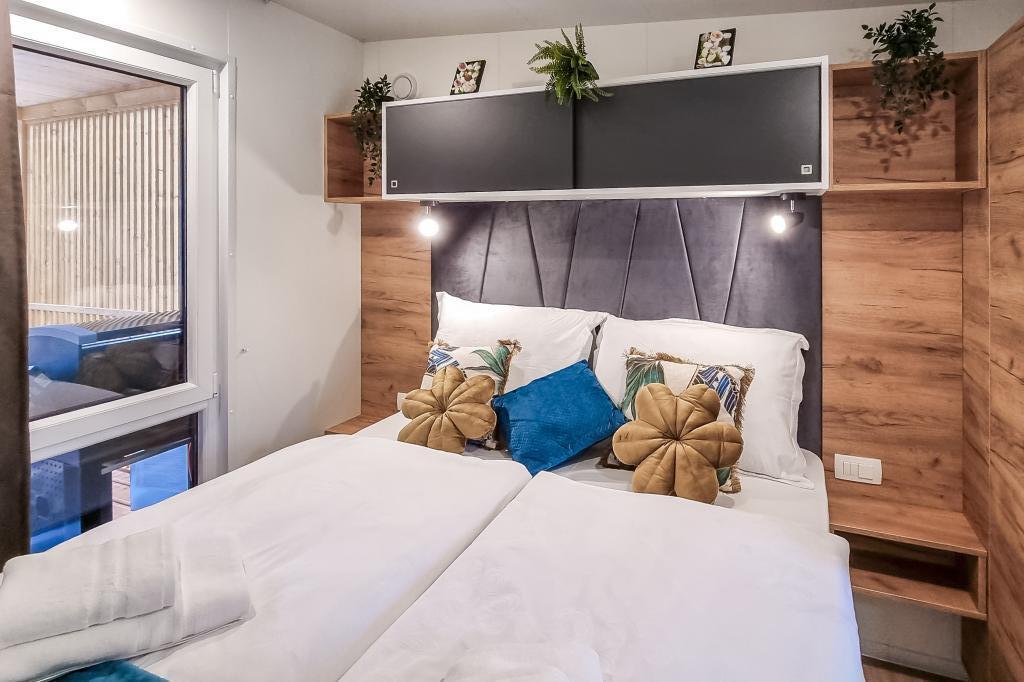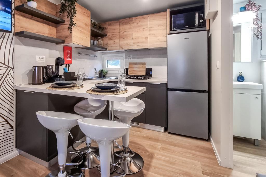 Modern felszereltségű mobilházunk kényelmes szállást kínál akár 6 fő részére, 2 tágas hálószobával, egy kihúzható kanapéval felszerelt nappalival és 2 fürdőszobával. Élvezze a nagy fedett teraszt, amely étkezővel és kültéri nappalival rendelkezik, ideális hosszú esti összejövetelekhez. Itt dartsozhat, vagy pihenhet a nagyméretű tévé előtt, miközben grillezhet nagyméretű gázgrillünkön és kültéri tűzhelyünkön. A fedett teraszt fenyőfák és lágy tengeri szellő veszi körül. A terasz egyik oldalán egy tágas étkező található, amely kényelmes kanapéval és még kényelmesebb fotelekkel van felszerelve, míg a másik oldalon a kültéri nappalink kényelmes ülősarokkal várja vendégeit, ahol nemcsak pihenhet, hanem kedvenc tévéműsorait is élvezheti a hatalmas tévén, amelyen elérhetőek műholdas TV-csatornák, Netflix és HBO GO csatornák. A ház 3 percre található a gyönyörű strandtól.