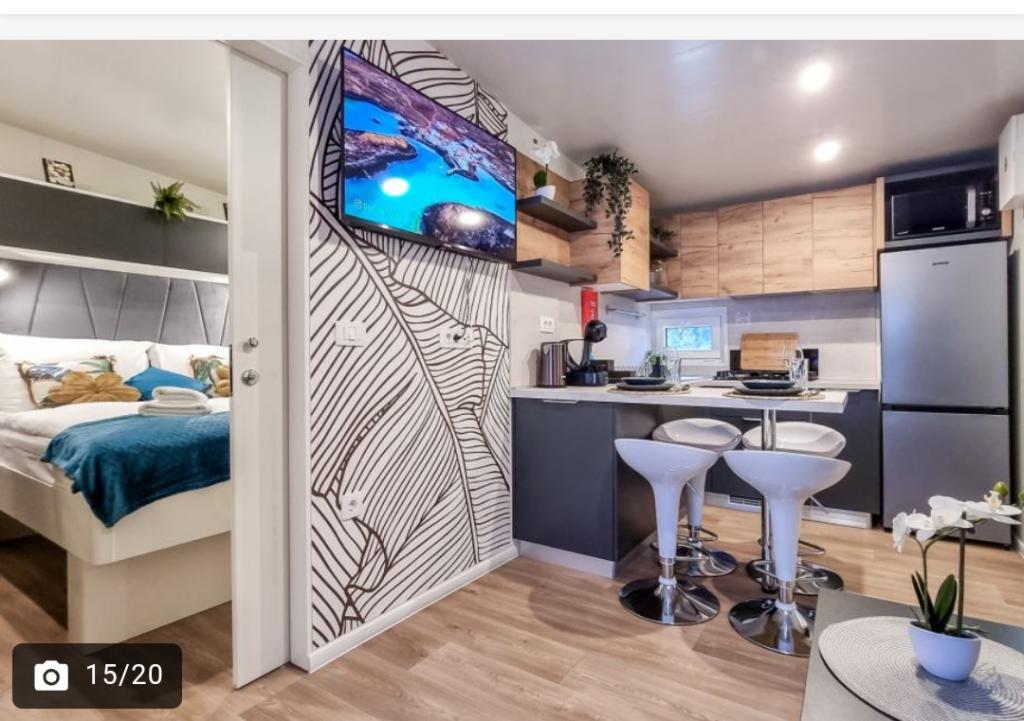 ️Nagy fedett terasz étkezővel és kültéri nappali nagy TV-vel és darts-szal ️Nagy gázgrill + gáztűzhely ️Teljesen felszerelt konyha (hűtőszekrény, mikrohullámú sütő, gáztűzhely, vízforraló, kávéfőző, mosogatógép, kenyérpirító, minden szükséges edény) ️Nappali nagy TV-vel ️Ingyenes WI-FI, SAT TV, légkondicionáló ️Kényelmes damaszt ágynemű és törölközők ️Hajszárító, vasaló ️Etetőszék gyerekeknek ️1 parkolóhely, második parkolóhely felár ellenében A Pearl House mobilház kemping mindössze 3 perc sétára található a homokos és kavicsos strandtól, és 10 perc sétára Biograd központjától. A kempingben és környékén minden megtalálható, amire egy pihentető nyaraláshoz szükség van - az üzletektől és éttermektől kezdve a sportpályákon és játszótereken át. A legnagyobb öröm a napsütés és a tenger élvezete, valamint a kirándulások lehetősége vonzó nemzeti parkokba, mint például a Krka Nemzeti Park, a Kornati Nemzeti Park, a Paklenica Nemzeti Park, vagy a történelmi városokba, mint például Zadar és Šibenik.