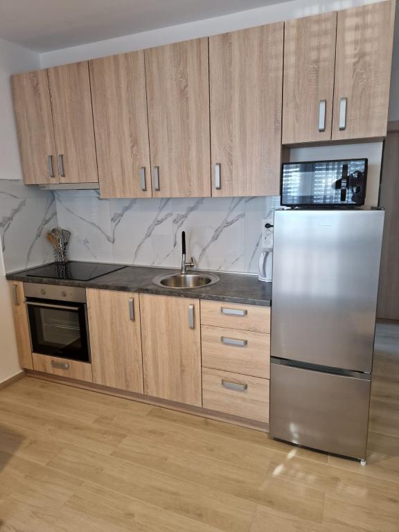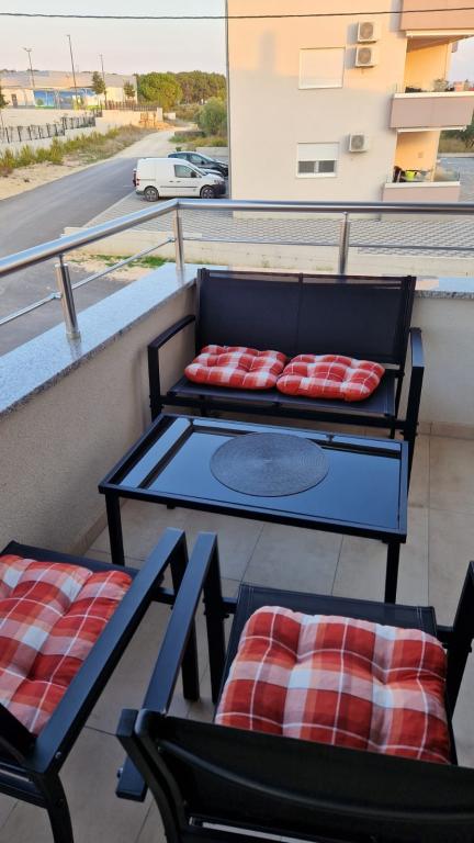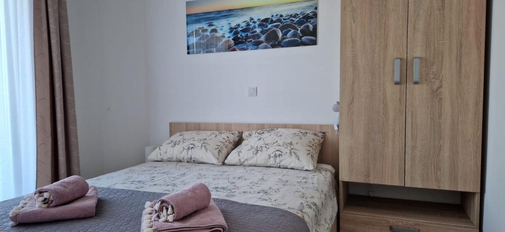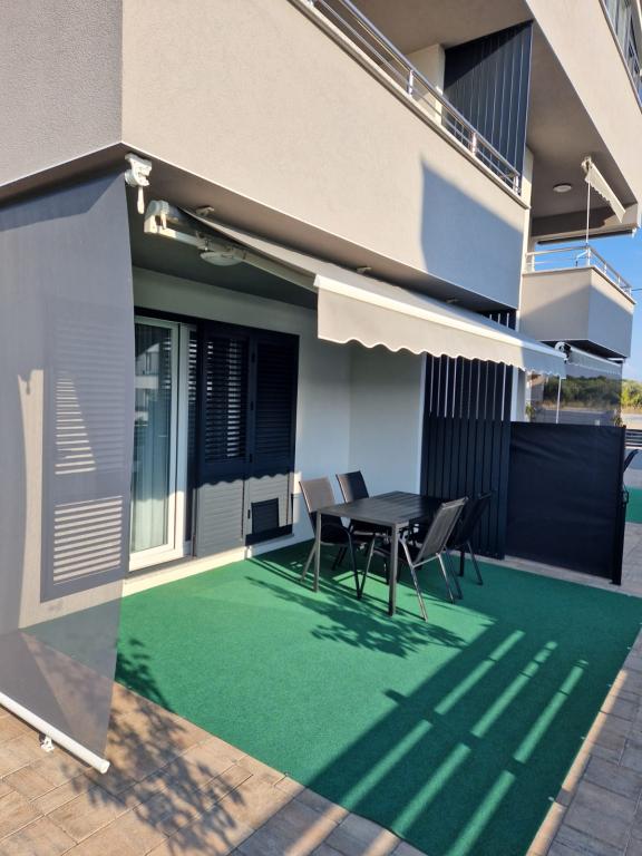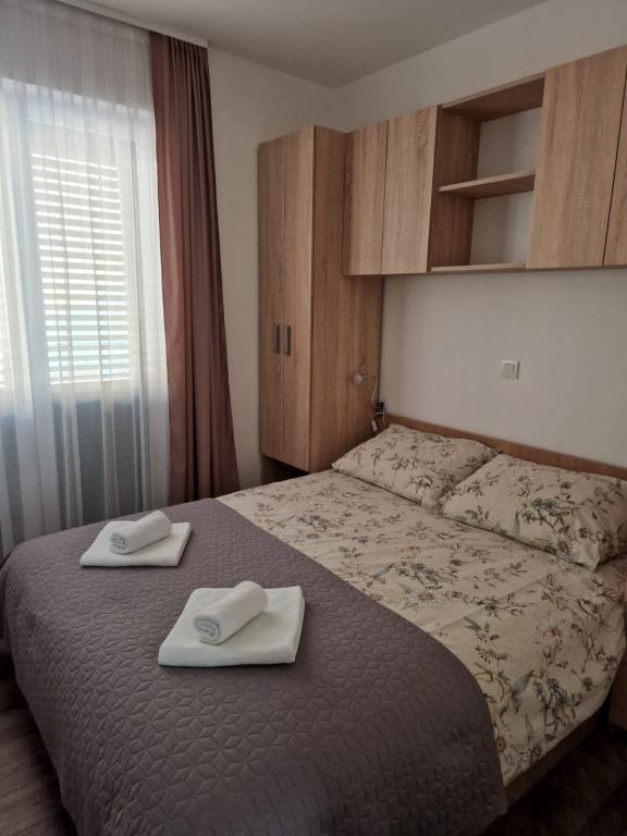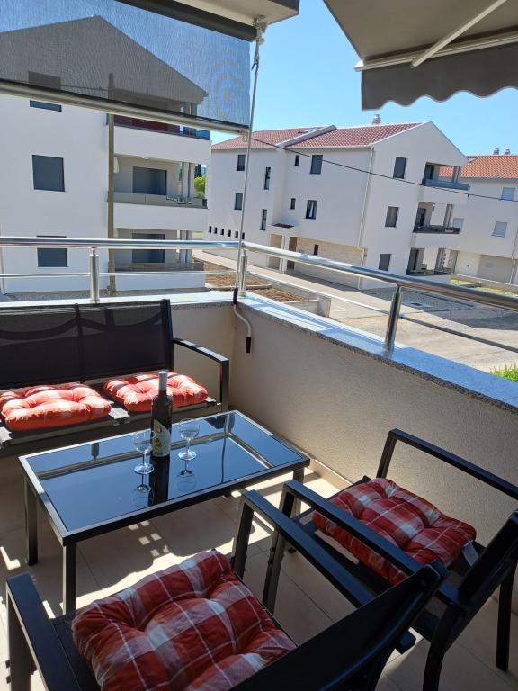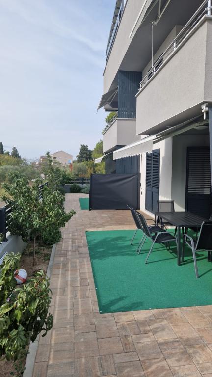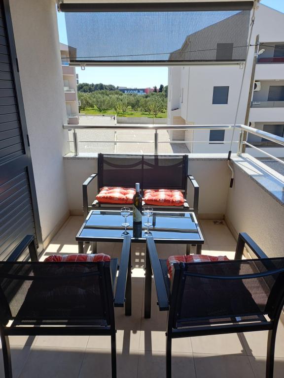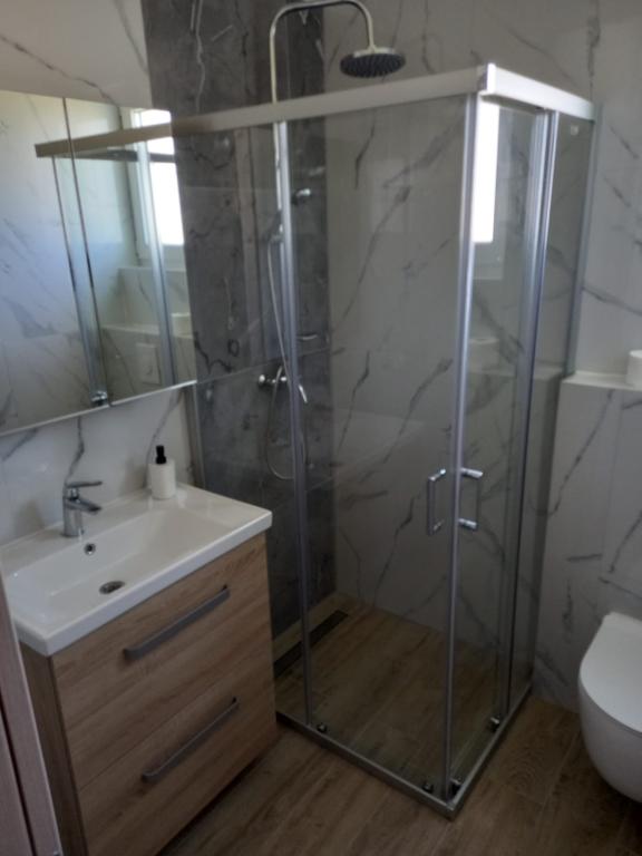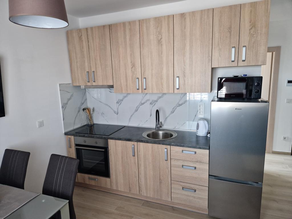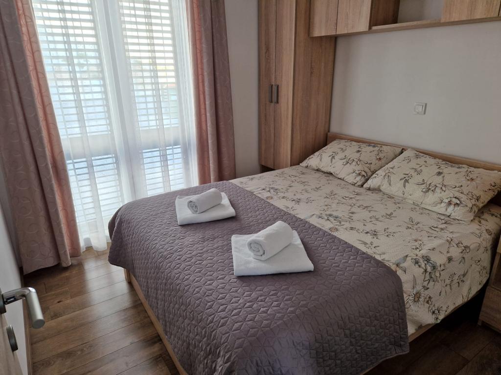 A Villa Toni egy újonnan épült épület. Az apartmanok nagyon szépen berendezettek, modernek és tágasak. Minden apartmanhoz teljesen felszerelt konyha tartozik. Minden nappaliban van egy kanapé. A szobákban nagy franciaágyak és minőségi és kényelmes matracok találhatók. Minden apartman légkondicionált és mosógéppel felszerelt. A teraszokon és az erkélyeken napellenzők vannak (elöl és oldalt). A villa a város csendes részén található. Az udvarban parkolóhely biztosított. A közelben számos szupermarket, strand, étterem és kávézó található. 10 perc sétára van a központtól és 5 percre a strandtól.