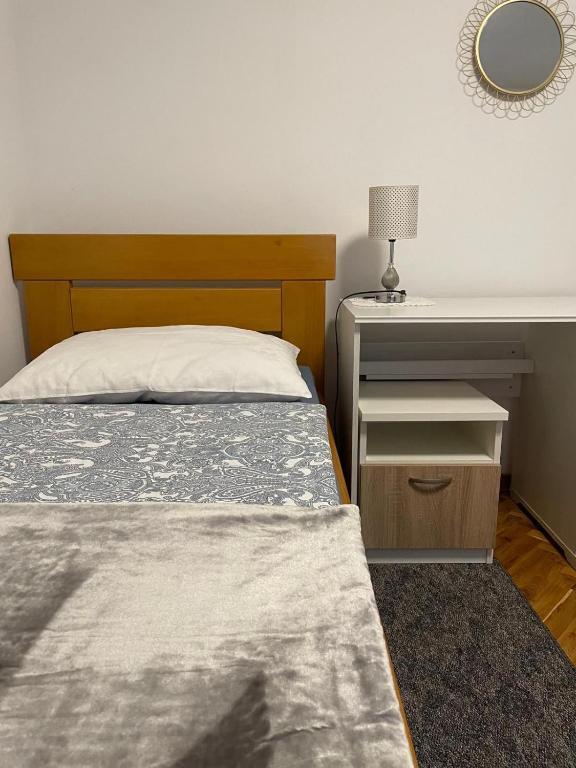 Az apartman külön bejáratú magánházban található. A földszinten található, és maximum 4 fő kényelmes elszállásolására alkalmas. A parkolóhely a lakás előtt található és ingyenes. Kb. 50 m2-en található: két hálószoba (két különálló 90x200 cm-es ágy az egyikben és egy franciaágy 160x200 cm a második szobában), nappali kanapéval, étkező teljesen felszerelt konyhával, fürdőszoba zuhanyzóval, mosógéppel és terasszal. Légkondicionáló és TV található a nappaliban, és ingyenes Wi-Fi áll rendelkezésre az egész apartmanban.