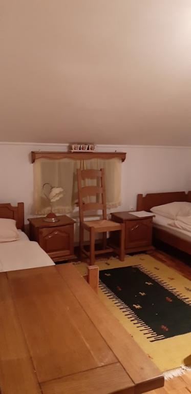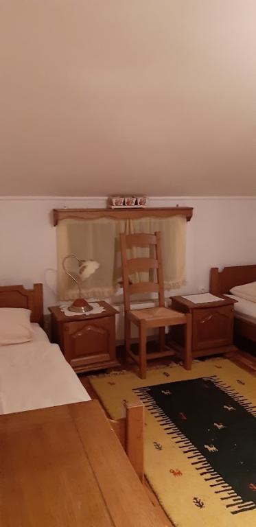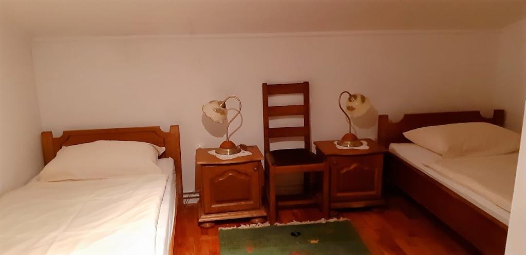 Kiadó családi ház szobákkal Bilogora lejtőin. A tetőtérben három szoba fürdőszobával, egy nagy közös nappali és egy szabadtéri terasz található. A ház körül egy nagy udvar fedett terasszal, mely mellett grillező található, ami használható. A gyümölcsösben van egy pavilonunk is, ahonnan dámszarvasokat lehet megfigyelni.