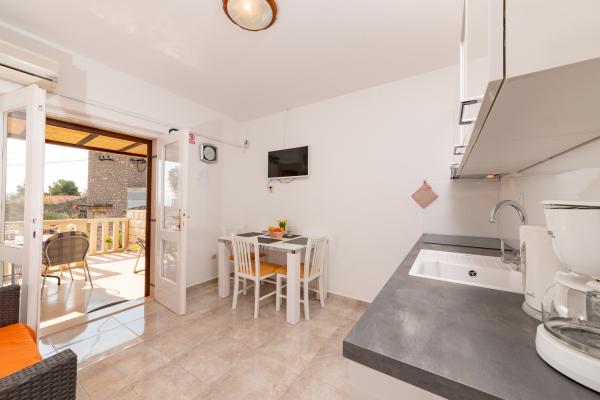 Kőház nagy terasszal, grill és napozóágyak második helyezett a tenger, egy nyugodt, csendes környezetben. A létesítmény található, 5 percre a központtól és 10 perc séta a tengerparton !!!