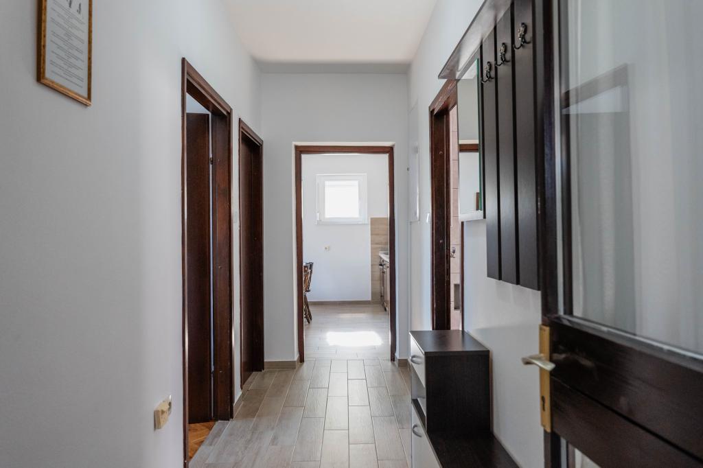 Ebben az apartmanban voltunk már 3-szor. A lakás bútorozott standard, 3 hálószoba, konyha, fürdőszoba, nagy terasz. 8-9 ember elfér gond nélkül. 2x légkondicionáló. Külső zuhany. A tulajdonos és családja nagyon barátságos és segítőkész. Utazás a tenger után egy életképes pályára kb 100 m, egy szép, kis strand kavicsos. Több kis és nagy romantikus strandok a területen, ha egy darab ólom vagy menjen autóval. Tiszta tenger, gyönyörű. Azt javaslom.