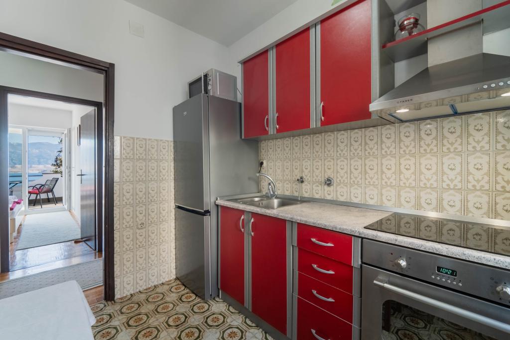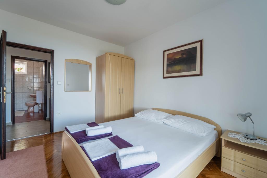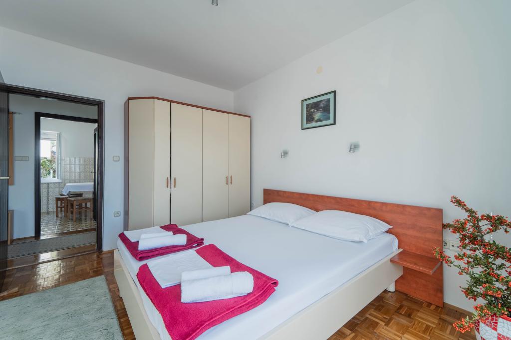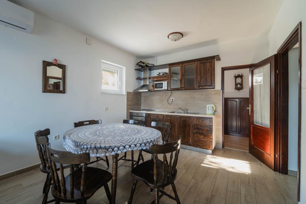 Egy igazán szép hely, csendes környezetben, csikók és madarak énekelnek reggel. Apartman az első emeleten tágas, funkcionális és tiszta terasszal, csodálatos kilátással a tengerre és a hegyekre. Az alsó szinten található egy nagy kert, így biztosan alkalmas a kisgyermekes családok számára. A legközelebbi strandhoz néhány perc, a környéken sok bájos öböl. Rendkívül szép, nyitott a vendégek igényeihez és rendkívül hasznos. Köszönjük a nagyszerű nyaralást, és őszintén ajánljuk ezt a helyet. Üdvözlet!