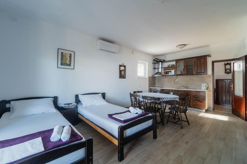 Azt ajánlom :) kisváros csendes - quiet. A strand 100 m, aprókavicsos túl széles, de nem sok strand járók, a víz kristálytiszta, és meglehetősen nagy sekélység ajánlott gyerekeknek. A területen egy pár szép strandok 30 perc sétára vagy meghajtó 5min.Gospodarz rendkívül barátságos és figyelmes családi légkör teremt otthonos nagyon kellemes számunkra házi süteményeket. Apartman 100%-ban leírtak szerint tiszta és jól karbantartott található természetes árnyékot, felébredtek a reggeli nap sugarai a csukott zsaluk przezierające hibátlan külső zuhany.