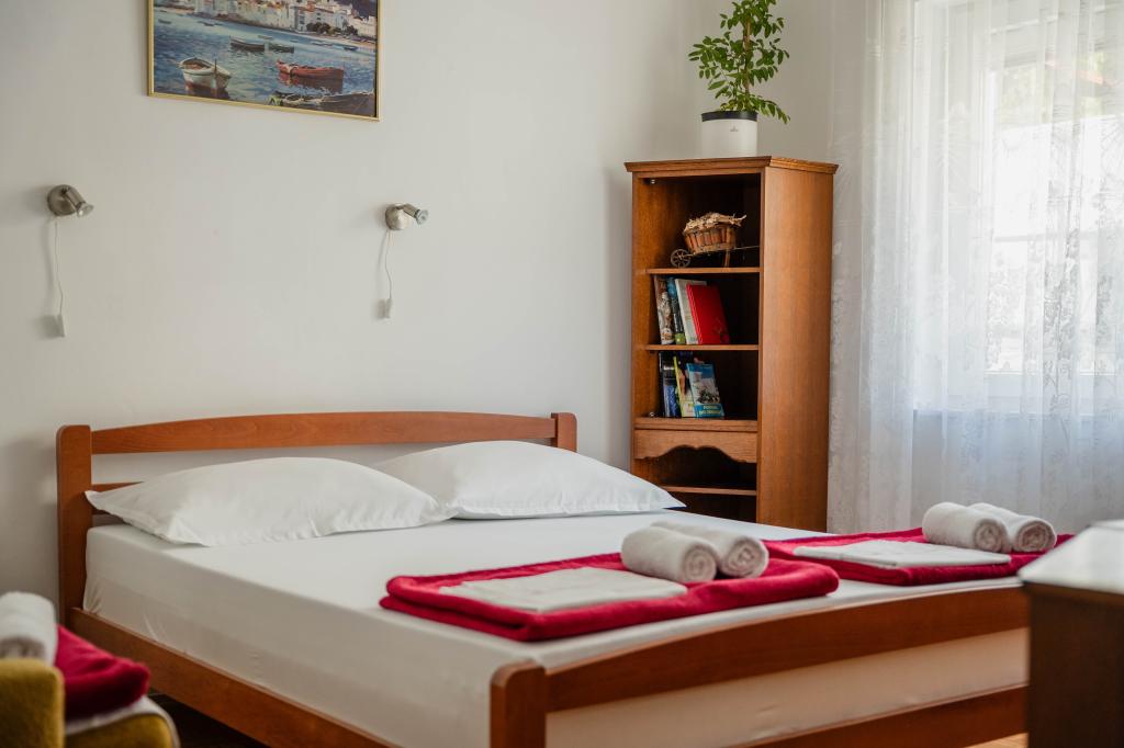 Lakossági adót az az ár tartalmazza. Foglalási visszaigazolás dokumentum foglalás eseténMindkét apartmant baráti társasággal és gyerekekkel béreltük ki. Nagyon csendes, félreeső, zöld helyen található, gyönyörű kilátással, mindkét apartman gondosan és jól felszerelt, a házigazdák pedig nagyon barátságosak. A felső apartman naposabb, és három kétágyas hálószobából (az egyik az étkezőhöz kapcsolódik), egy konyhából és egy fürdőszobából áll. Az egyik hálószobában egy további kanapé található. Az apartmanban két légkondicionáló és egy napos terasz található, amely kellemes árnyékot biztosít délutánonként. Az alsó apartmanban három hálószoba található (az első egy nagy kétágyas hálószoba, a második egy kis kétágyas hálószoba, a harmadik pedig egy kis hálószoba 1-1,5 fő részére), egy jól felszerelt konyha étkezővel és két pótággyal, valamint egy fürdőszoba. Ebben az apartmanban is két légkondicionáló található. Az apartmanhoz árnyékos terasz és egy kis zöld kert tartozik nyugágyakkal. Mindkét apartman nagy előnye a szúnyogháló minden ablakon, a mosógéphez való hozzáférés, a kültéri zuhanyzó, a jól működő Wi-Fi és a saját parkoló. A strandhoz egy meglehetősen meredek, háromperces lejtőn lehet eljutni egy kényelmes, aszfaltozott ösvényen és lépcsőkön keresztül. A strand egy gyönyörű öböl, amely alkalmas mind a gyermekek, mind az erős úszók számára, és a sznorkelezés szerelmesei számára is érdekes. Néhány kilométerre, a bájos Pag városában élelmiszerbolt, éttermek és egyéb látnivalók, valamint szolgáltatások találhatók. A lakástulajdonosok hihetetlenül barátságosak és vendégszeretőek, mindig a helyszínen vannak és mindent elintéznek. Jól beszélnek angolul és gyorsan reagálnak a megkeresésekre. Nagyon szeretjük a szállást, és ajánljuk is.