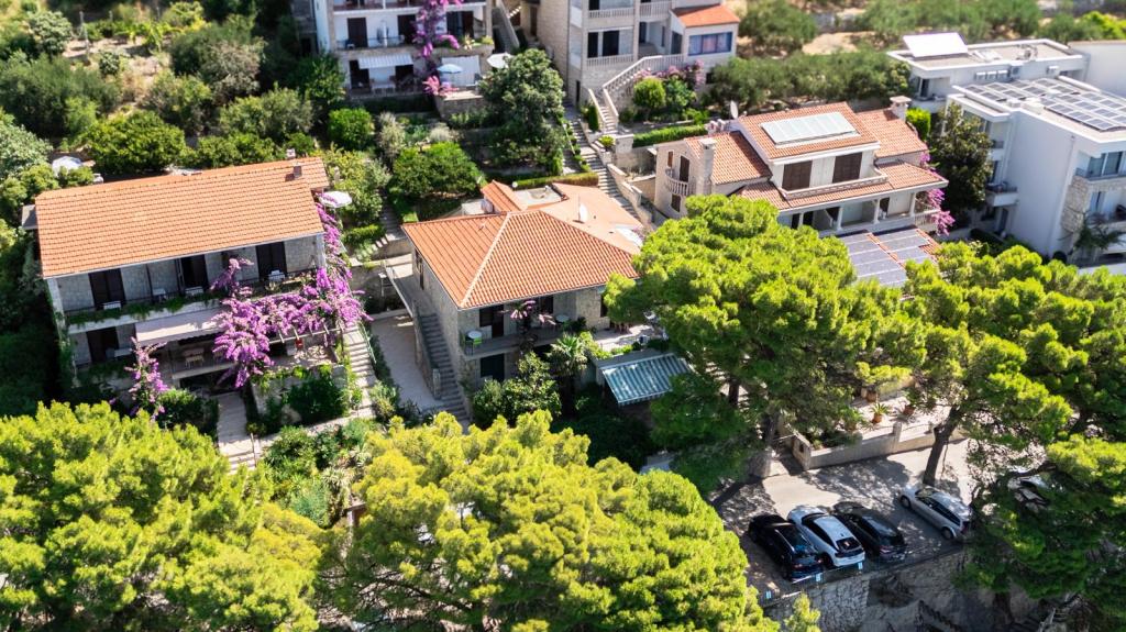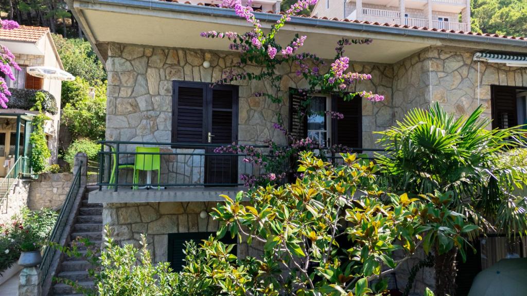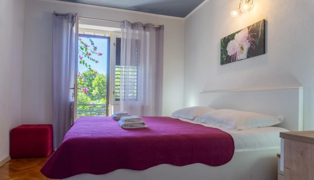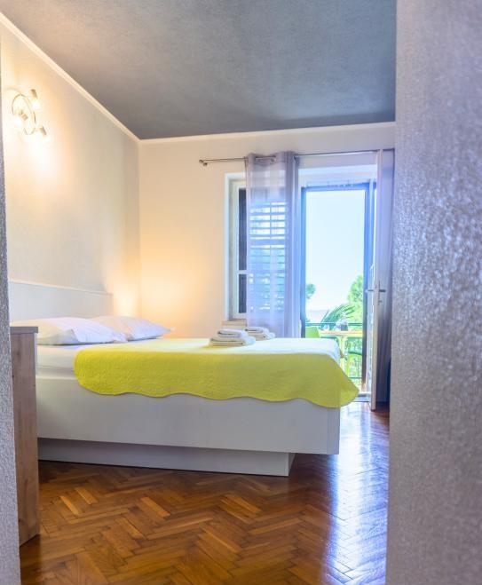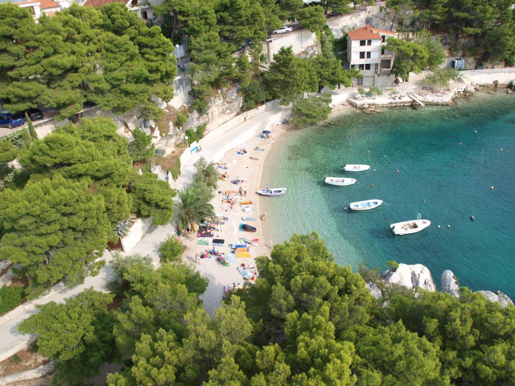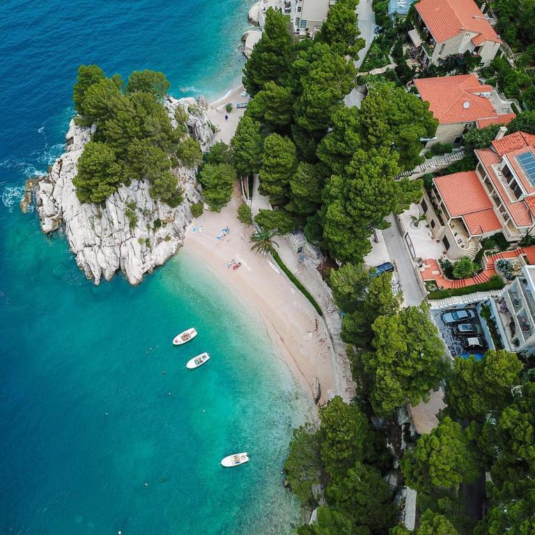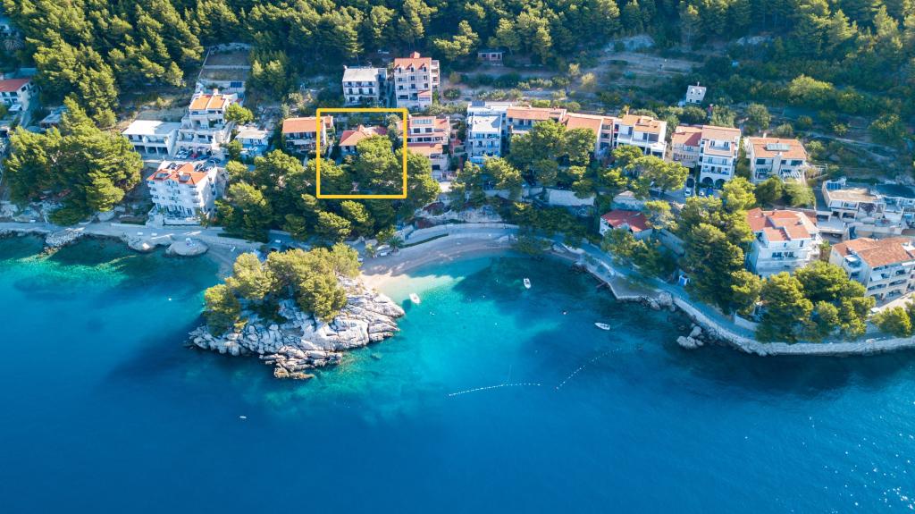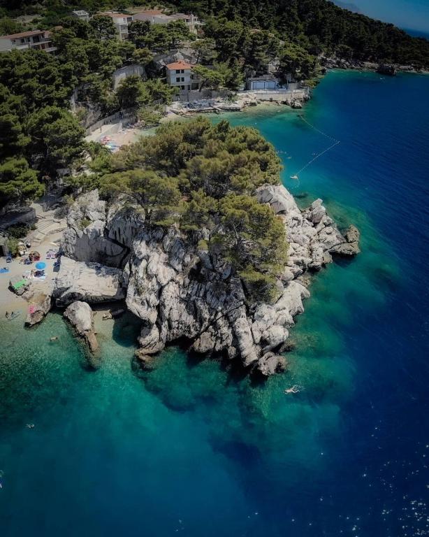 Az apartman az első sorban található a tenger mellett, közvetlenül a Podrače strand mellett, amely Horvátország egyik leghíresebb strandja. A szállástól mindössze két perc sétára található a Brela-kő, az egész Brela község szimbóluma, közvetlenül a Brela-kő mellett található a Punta Rata strand, amelyet a világ egyik legszebb strandjának nyilvánítottak. évekig. Maga az apartman egy nagy előszobából áll, két hálószobával, nagy franciaággyal. Minden szobához saját fürdőszoba és tengerre néző erkély tartozik. Az apartmanhoz felszerelt konyha is tartozik. Az egyéb szolgáltatások közé tartozik a légkondicionáló, a SAT TV és a WiFi. Az apartman maximum 4 fő elszállásolására alkalmas