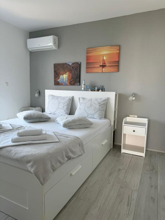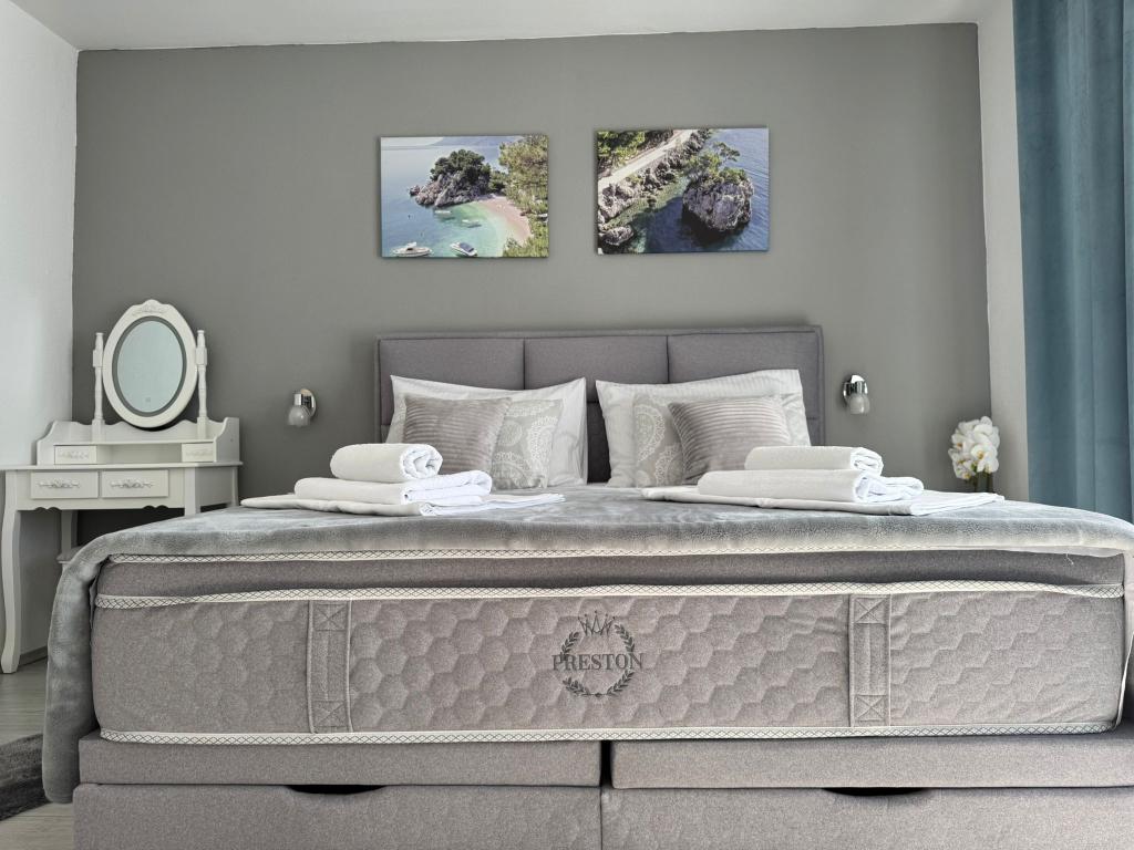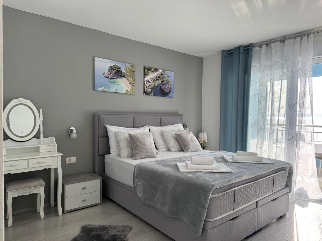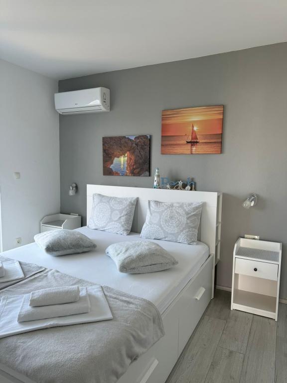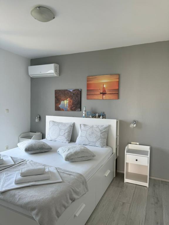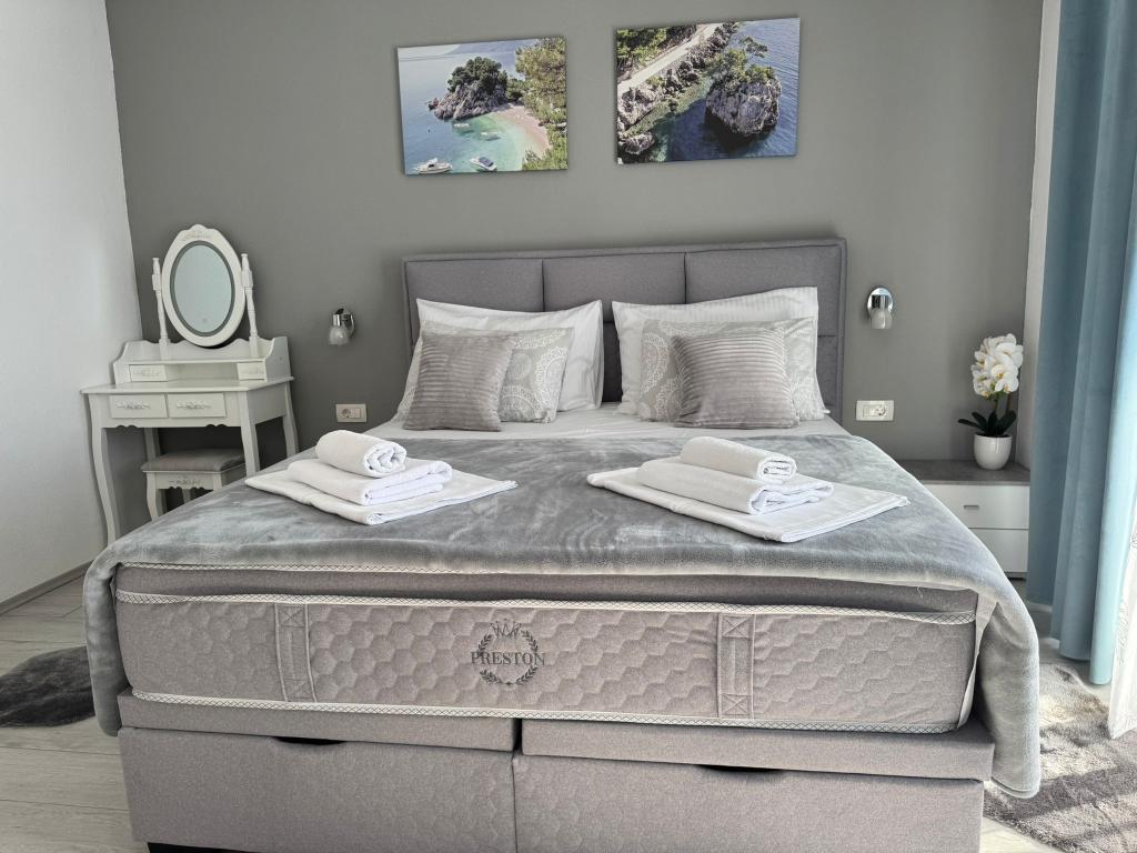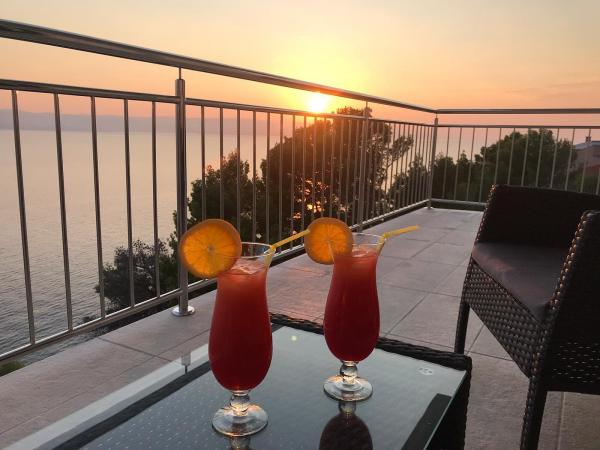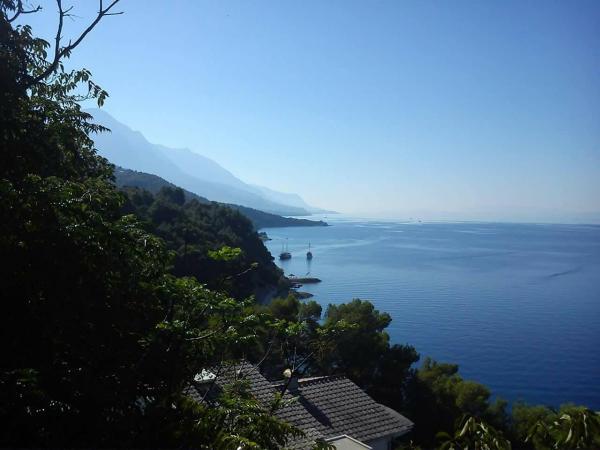 VILLA Orada fenyvesekkel körülvéve, kilátással a tengerre és a dalmát szigetek csendes öbölben Podcrkavlje Donja Brela. 150 méterre a gyönyörű strandok, ahol mindenki megtalálja a neki valót, éttermek, kávézók, koktél bár, ajándéktárgyak és tárgyak a parton vízi sportok. Az apartman található, mindössze 10 percre a mini piac és az utazási irodák, ami viszont kínál kalandos rafting a Cetina folyón, közel a város, túrázás a hegy lejtőjén és egynapos kirándulások hajóval a közeli dalmát szigetekre. Brela egyedülálló a maga kristálytiszta kék tenger, gyönyörű strandok és öblök, és éppen olyan, mint egy ideális hely a nyaralás és barátságos házigazdák gondoskodik arról, hogy jól érzik magukat, és elégedett. Üdvözlünk!