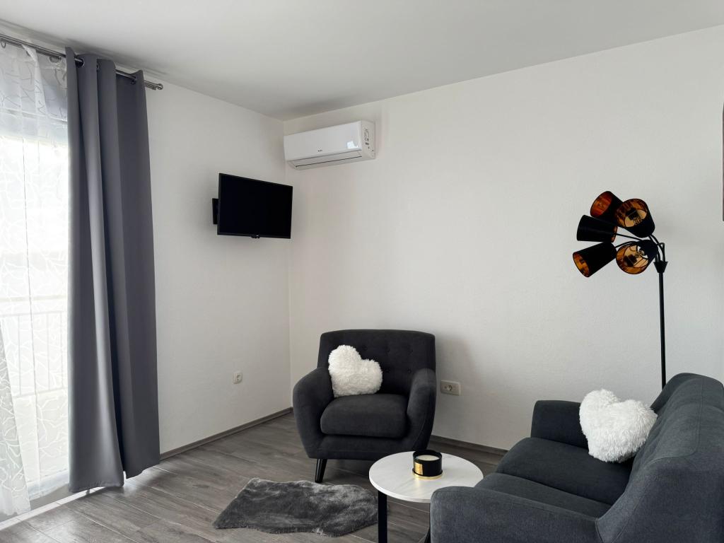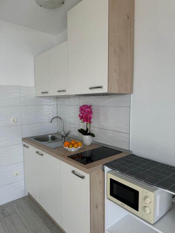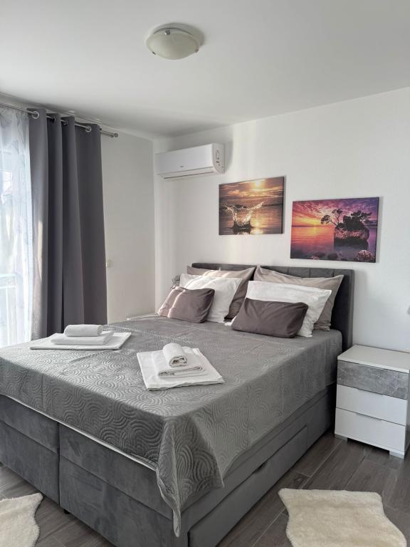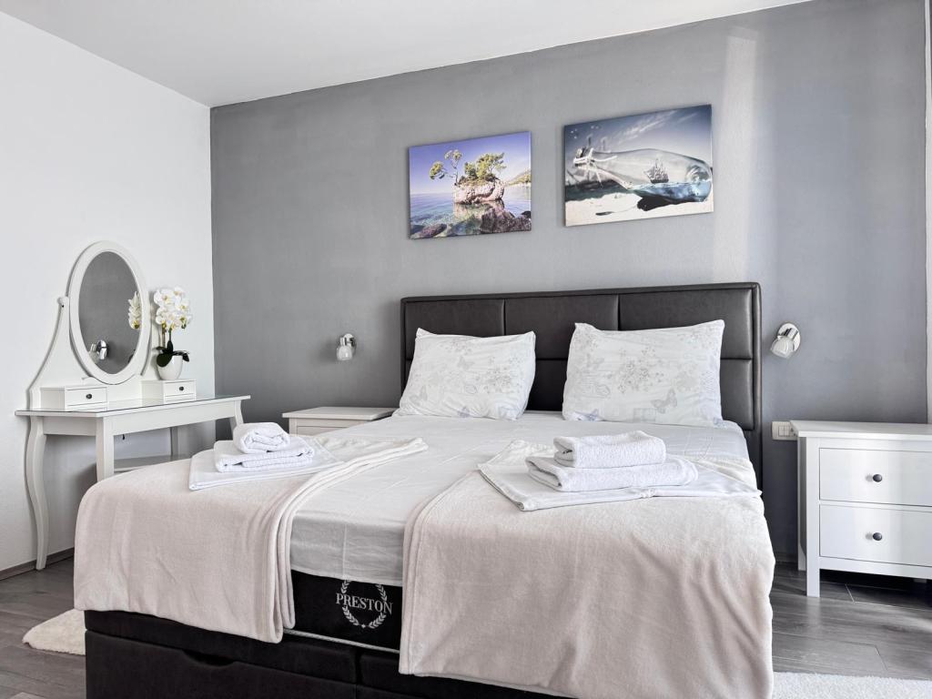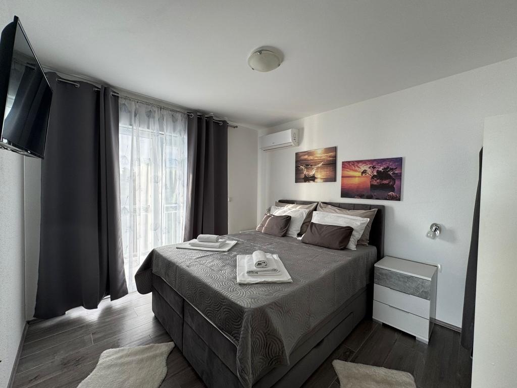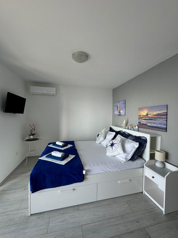 VILLA Orada fenyvesekkel körülvéve, kilátással a tengerre és a dalmát szigetek csendes öbölben Podcrkavlje Donja Brela. 150 méterre a gyönyörű strandok, ahol mindenki megtalálja a neki valót, éttermek, kávézók, koktél bár, ajándéktárgyak és tárgyak a parton vízi sportok. Az apartman található, mindössze 10 percre a mini piac és az utazási irodák, ami viszont kínál kalandos rafting a Cetina folyón, közel a város, túrázás a hegy lejtőjén és egynapos kirándulások hajóval a közeli dalmát szigetekre. Brela egyedülálló a maga kristálytiszta kék tenger, gyönyörű strandok és öblök, és éppen olyan, mint egy ideális hely a nyaralás és barátságos házigazdák gondoskodik arról, hogy jól érzik magukat, és elégedett. Üdvözlünk!