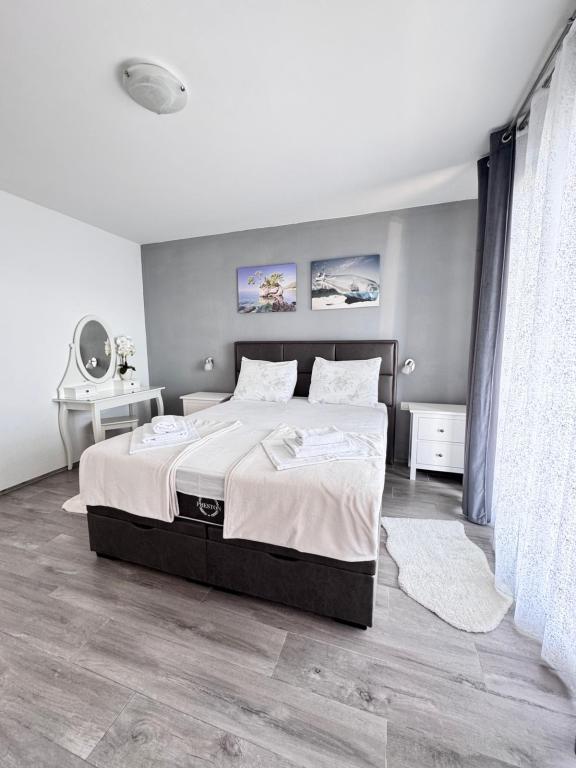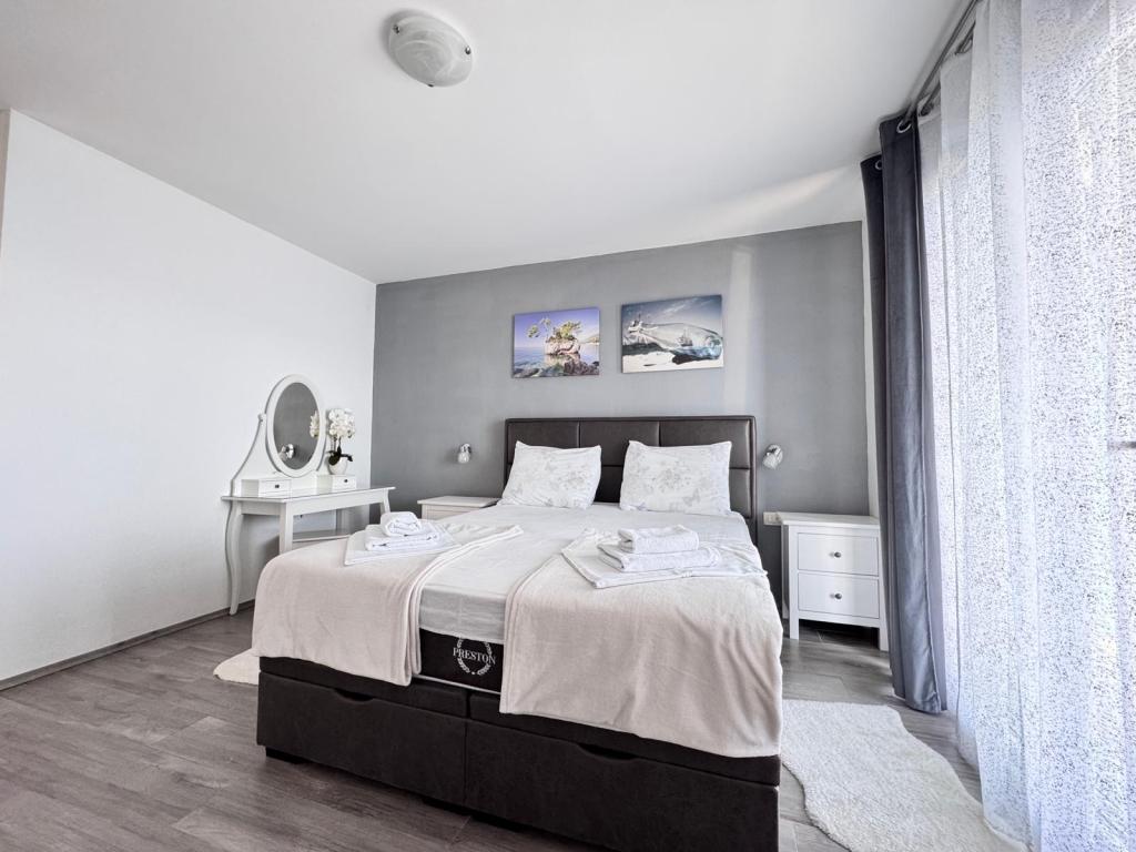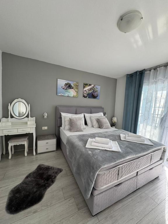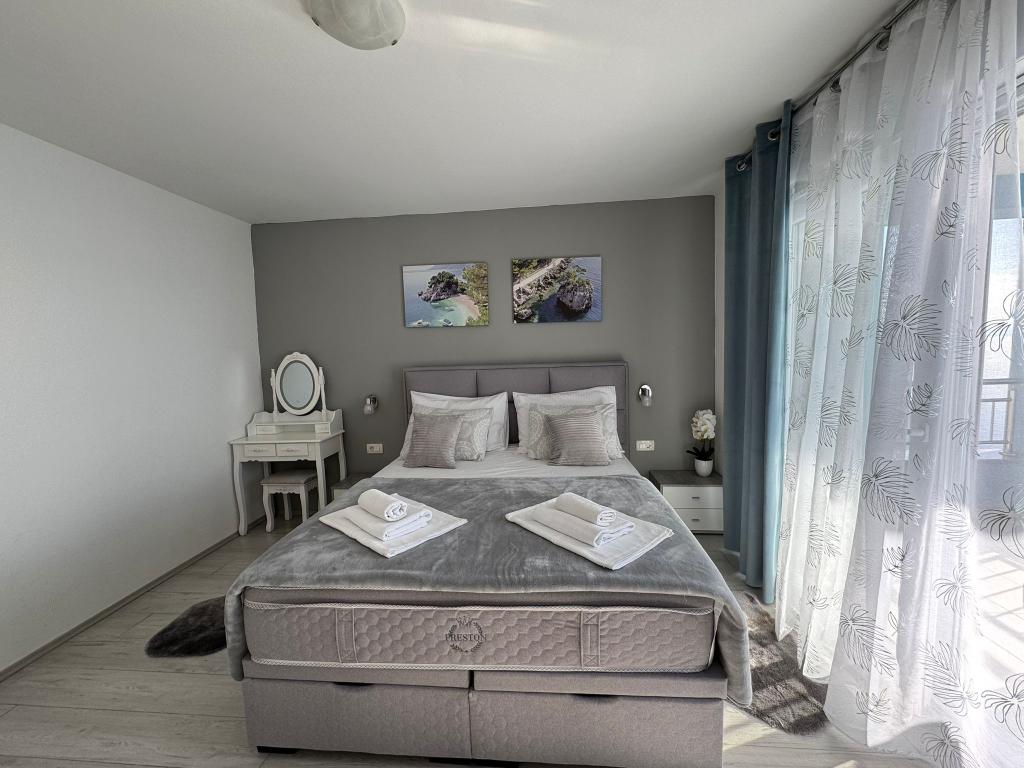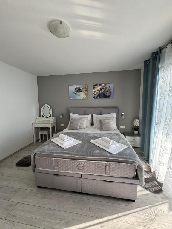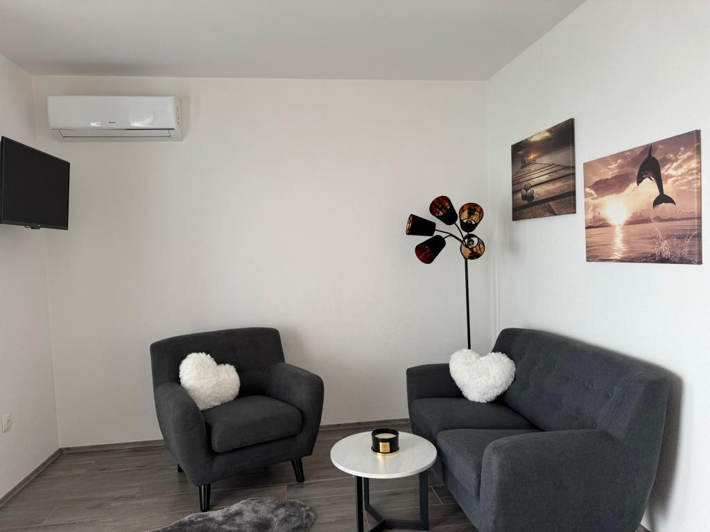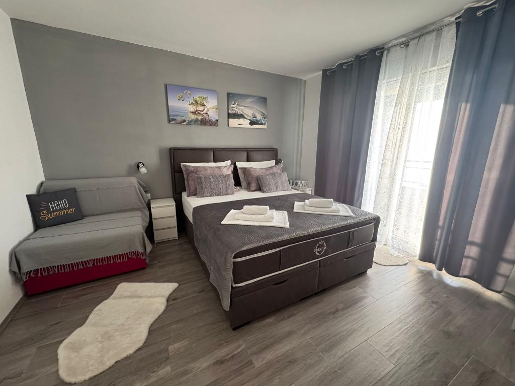 VILLA Orada fenyvesekkel körülvéve, kilátással a tengerre és a dalmát szigetek csendes öbölben Podcrkavlje Donja Brela. 150 méterre a gyönyörű strandok, ahol mindenki megtalálja a neki valót, éttermek, kávézók, koktél bár, ajándéktárgyak és tárgyak a parton vízi sportok. Az apartman található, mindössze 10 percre a mini piac és az utazási irodák, ami viszont kínál kalandos rafting a Cetina folyón, közel a város, túrázás a hegy lejtőjén és egynapos kirándulások hajóval a közeli dalmát szigetekre. Brela egyedülálló a maga kristálytiszta kék tenger, gyönyörű strandok és öblök, és éppen olyan, mint egy ideális hely a nyaralás és barátságos házigazdák gondoskodik arról, hogy jól érzik magukat, és elégedett. Üdvözlünk!
