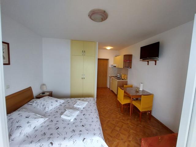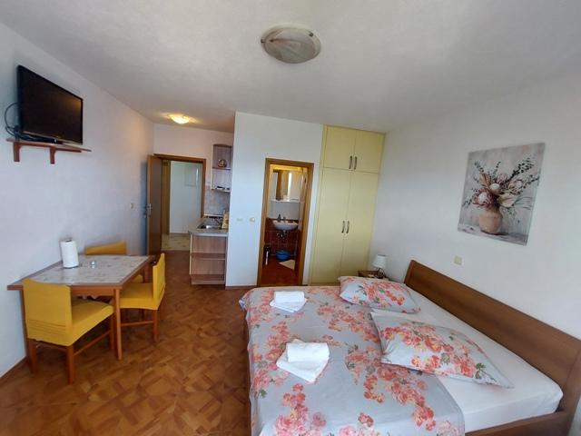 Sziasztok! Ajánlom Lidonka asszony apartmanját, ahol mindent megtaláltok, amire a családotoknak szüksége lehet; minden szükséges eszközzel fel van szerelve a mindennapi használathoz. Ha kedvetek van főzni a gyerekeknek, könnyen megtehetitek, és ha a tengerparti sétányon szeretnétek enni, széles választékban találtok éttermeket. Ráadásul a tulajdonos egy nagyon kedves és kedves ember, akivel bármiről lehet beszélgetni. Nagyon örültem, amikor a születésnapom előtti napon meglátogatott, mivel másnap indultunk. Boldog születésnapot kívánt, és egy házi készítésű likőrrel ajándékozott meg, ami nagyon kedves volt. Szóval, kedveseim, teljes szívből ajánlom Lidonka apartmanjait. Közel vannak a strandhoz, és a kilátás lélegzetelállító.