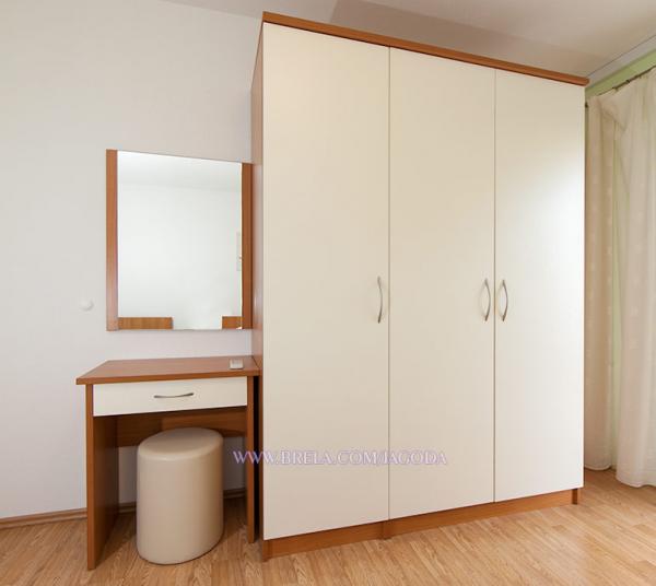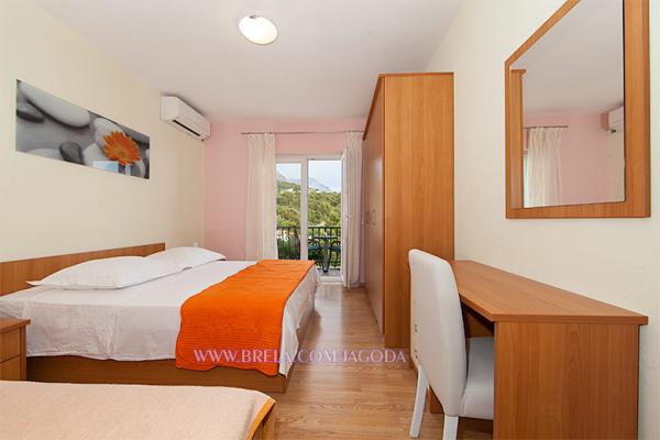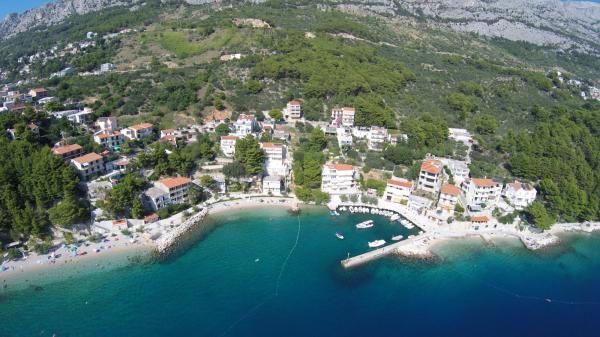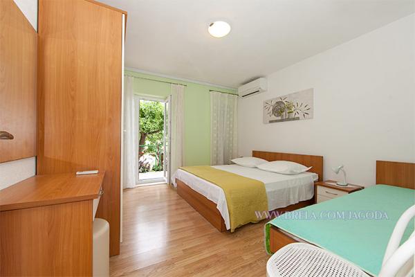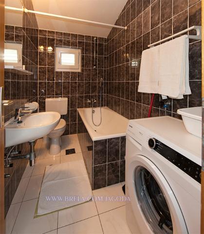 Apartmanok Jagoda Klaric találhatók egy csendes részén Brela (Stomarica) egy kilométer és fél a város központjától. Egyrészt ott van a kilátás a tengerre, és a másik, kilátással a hegy lejtőjén. A legközelebbi szupermarket 300 m, és a távolság a tengerparttól, ami körülbelül 2 perc sétára (80 m). Szállásunk áll: Apartman 1: 60m² 20m² szalonnával / terasz, 1 háromágyas szoba erkéllyel (földszint), 1 háromágyas szoba erkéllyel (1. emelet), 2 fürdőszoba WC-vel, teljesen felszerelt konyha étkezővel, nagy terasz, kilátással a tengerre. Maximális kapacitás 6 fő részére. Apartman 2 / (Na 2 emelet): 65m² 15m² erkély / terasz, 1 kétágyas szoba erkéllyel, 2 fürdőszoba WC-vel, egy háromágyas szoba erkéllyel, teljesen felszerelt konyha, étkező / nappali kihúzható kanapéval és erkéllyel, minden erkélyek kilátással a tengerre. Maximális kapacitás 6 fő részére.