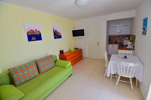 Szuper hely és remek háziasszony Mrs. Edita és az anyja, aki nagyban sütemények. Az apartman lenyűgöző kilátás nyílik a tengerre és egy nagy fedett terasz az árnyékban, és ha azt akarjuk, hogy a nap az erkélyen. A lakás frissen felújított, belül van minden, amire szüksége van a nyaralás. Gyerekek élvezték, mert tényleg elég hely játszani a teraszon, és a lakásban. Szintén a közelben tele van gyönyörű strandok. Ez szép, hogy minden a játékok, és a strand akkor hagyja, hogy a tengerparton, egy külön szobában. Az üzlet nagyon közel. Este sétálhat a part mentén. Élvezzük és a következő évben kerül visszafizetésre.