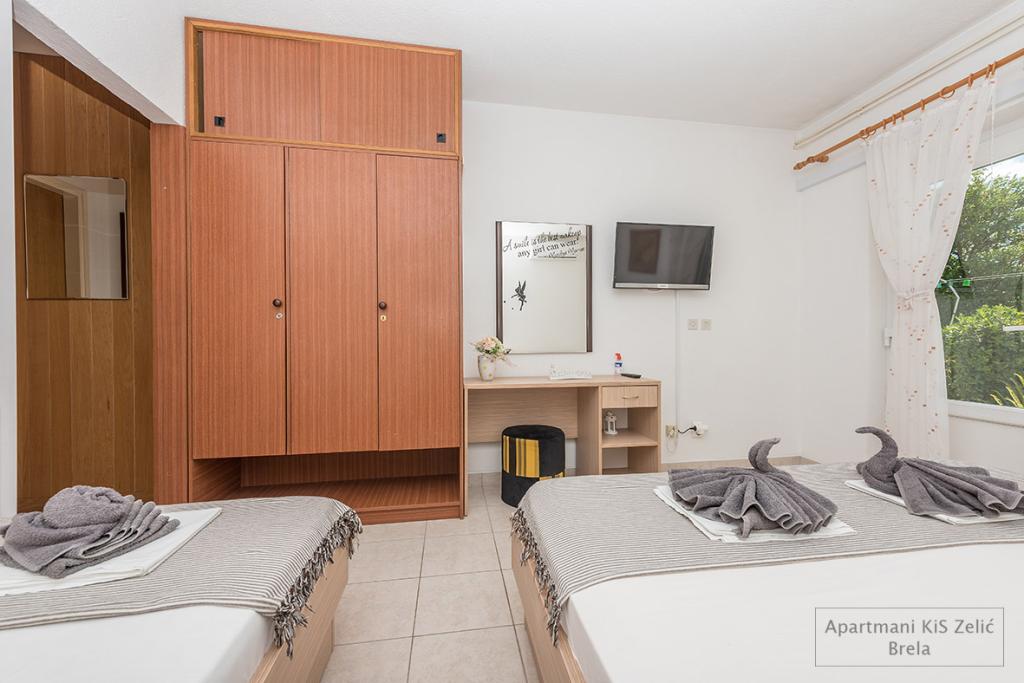 Az Apartments KiS Zelić csendes helyen található, mindössze 100 méterre a tengertől és a gyönyörű kavicsos strandoktól. Az egyik oldalon gyönyörű kilátás nyílik a tengerre és a szigetekre, a másik oldalon pedig a Biokovo-hegyre. Az apartmanokban mindent megtalál, amire szüksége van egy kellemes tartózkodáshoz. A szobák teljes ágyneművel és törölközővel felszereltek. A törölközőket 3 naponta, az ágyneműt pedig 7 naponta cserélik. A konyha étkezővel felszerelt tűzhellyel, hűtőszekrénnyel, vízforralóval, komplett edényekkel és evőeszközökkel. Minden apartmanhoz terasz vagy erkély, műholdas TV, WiFi és parkoló tartozik. A legközelebbi piac 200 m-re, egy étterem mediterrán konyhával 200 m-re található.