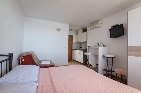 A Lela apartmant ajánlom. Van benne egy szoba konyhasarokkal és egy teljesen felszerelt fürdőszoba. Az erkélyről kilátás nyílik a tengerre. Közel van a strandhoz, és a helyszín is nagyszerű. A tulajdonosok nagyon barátságosak. Üdvözlettel, Magdalena Lengyelországból
