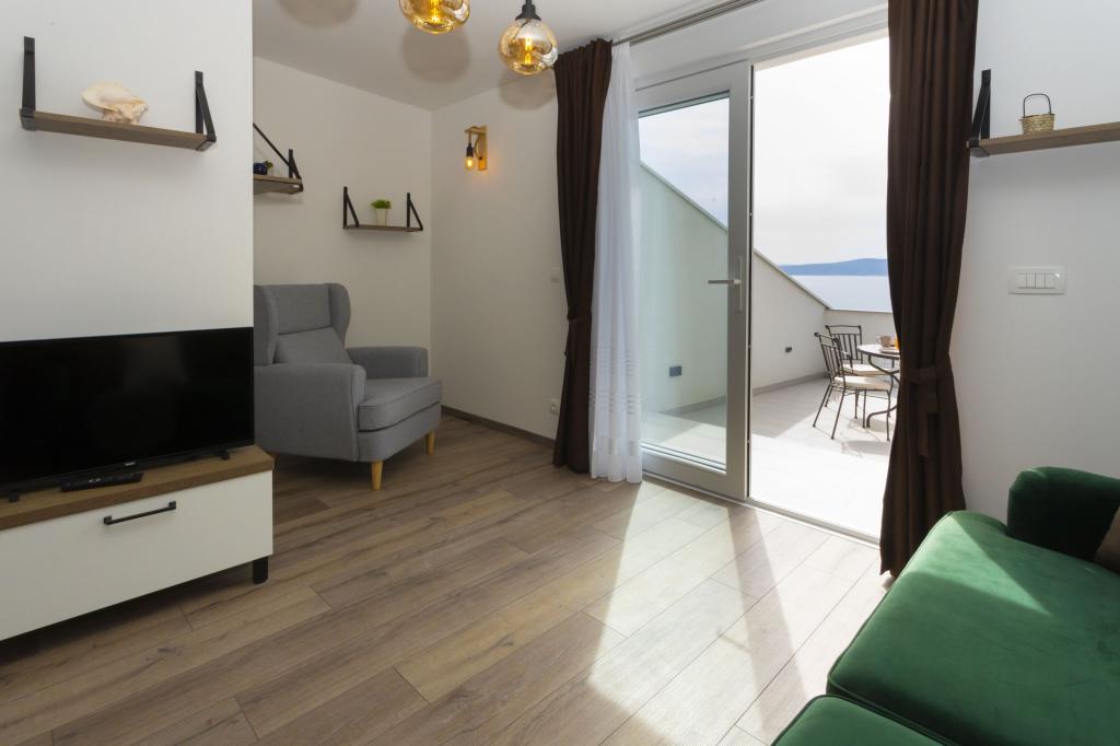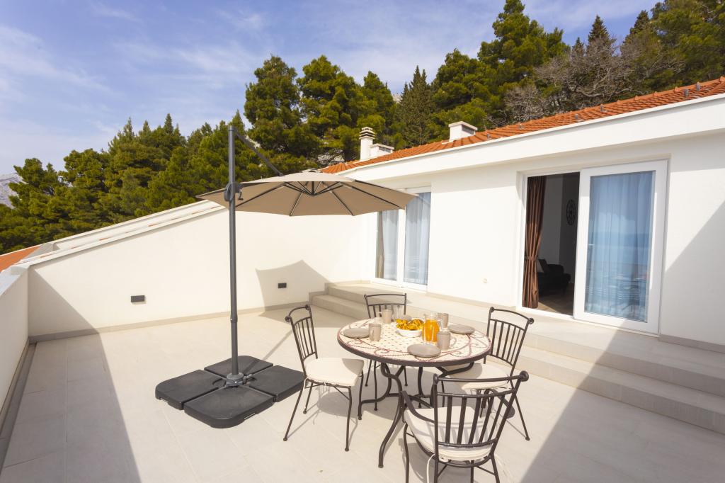 Apartmanok található, egy családi házban Brela, csendes helyen, közel a strand, éttermek, üzletek.