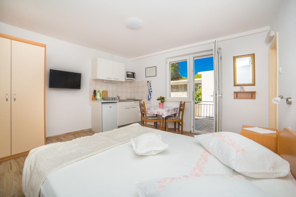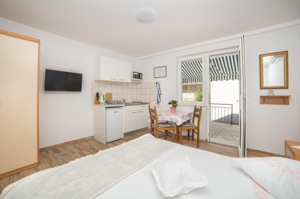 Az Apartments Stipan épülete Brela központjában található. A Brela természetes szépségének és csaknem százéves turisztikai hagyományának köszönhetően a világ turisztikai körében jól ismert név. Az apartmanjainktól a strandig csak 2 percre van szükség a lemenethez, a hátsó részhez pedig még egy kicsit, körülbelül 5 percre van szüksége. A központba, ahol az összes étterem, kávézó, cukrászda található, 10-15 perc sétára van szüksége. Brela 7-8 km hosszú, a tenger mellett pedig egy sétány található, amely este gyönyörű. Aki szereti a nyugalmat, a nyugalmat, a pihenést a zajtól és a nyüzsgéstől, és Brela tömege a megfelelő hely. A brelai nyaralás valami szép.