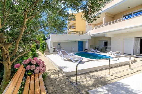 Az Apartments Ulix Brela Brelában található, egy kis vonzó helyen a makarskai riviérán, és hosszú távú turisztikai hagyományokkal rendelkezik. Kínálatunkban 3 db kétszobás apartman 4 2 (4 fős, 2 pótágyazható), 3 db 2 db 1 db (2 fős, 1 pótágyazható) stúdióapartman és 1 db garzonlakás (2 fő) található. ). Minden apartman újonnan felújított, tágas erkéllyel rendelkezik, kilátással a tengerre és a közeli szigetekre (kivéve a 2 fős stúdió apartmant, amely közvetlenül a medence mellett található), valamint vendégeinknek ingyenes wifi, parkoló , és medence a ház udvarán, edzőterem és közös mosógép. Csendes helyen található, 150 m-re a tengertől, ahonnan Brela központja kevesebb mint 10 perc alatt, Baška Voda központja pedig 15 perc alatt elérhető gyalogosan. A szupermarket mindössze 50 méterre, az első étterem pedig 300 méterre található.