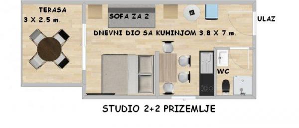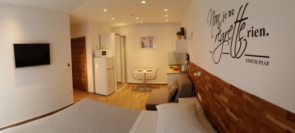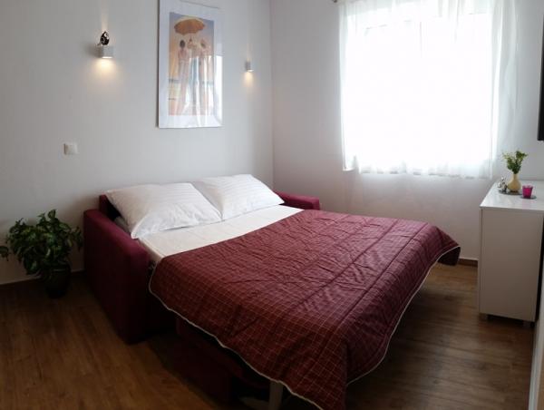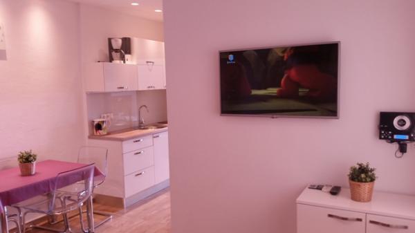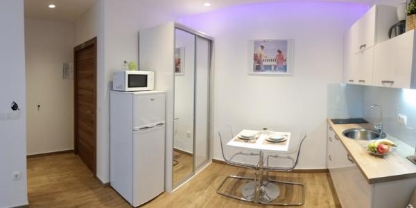 Stúdió nagyon szép és modern, nagyon tiszta. Teljes konyhai felszerelés. Közel a strand és az üzletek, csendes környéken. A parkolás a ház előtt. Voltunk egy kisgyerek, és ez nagyon jó, azt javasoljuk, 100%. Házigazdák nagyon kedves és segítőkész.