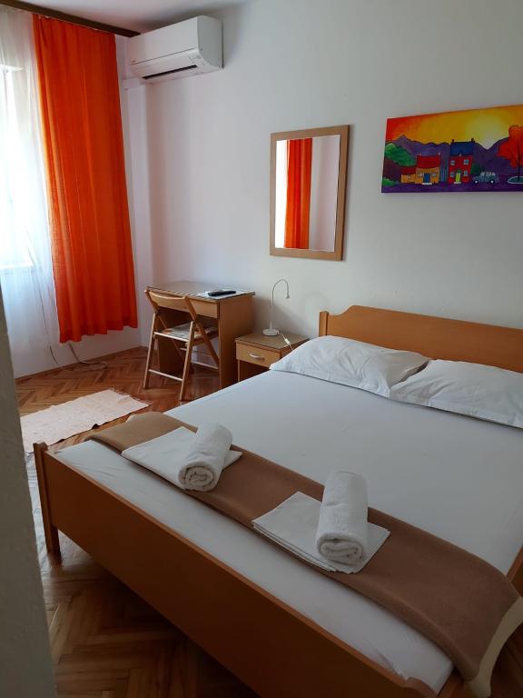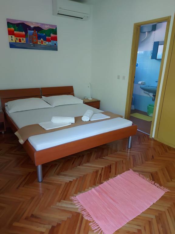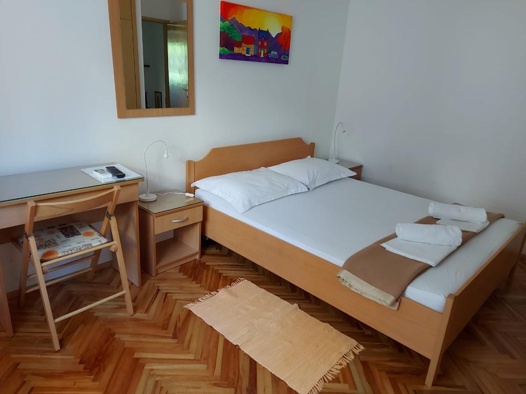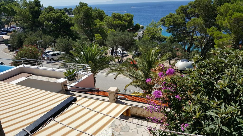 Kiadó ház, szobák Brela Šodan, Brela Soline nevű részén találhatók. A kiadó házban 5 szoba, egy nagy nappali kb 25 m2, egy konyha kb 16 m2 és egy nagy terasz kb 40 m2. Minden szobához saját fürdőszoba, LED SAT TV 82 cm, klíma és gyors WIFI korlátlan forgalommal. Az egész ház több szobás lakásként bérelhető, saját konyhával, terasszal és nappalival. Minden szoba franciaággyal felszerelt, a házban 10 felnőtt szállásolható el. Bérelhet egy fürdőszobás szobát, és használhatja a konyhát reggeli és gyors ételek elkészítésére. Ebben az esetben saját asztala lesz a közös teraszon, ahonnan kilátás nyílik a tengerre. A Brela Sobe Šodan egy gyönyörű kavicsos strandtól 50 méterre található, ahogy a mellékelt képeken is látszik. A Villa Šodan 5-10 perces sétára található Brela központjától és 10-15 perces sétára Baška Voda központjától. A szupermarket 15 méterre található a háztól. A nappaliban műholdas TV található. Minden részletes információért forduljon hozzánk e-mailben.
