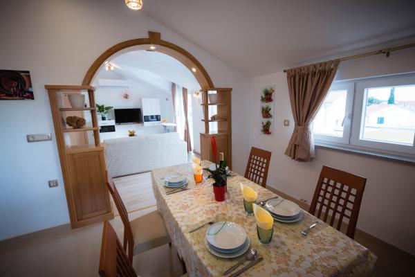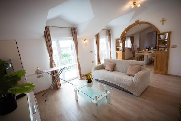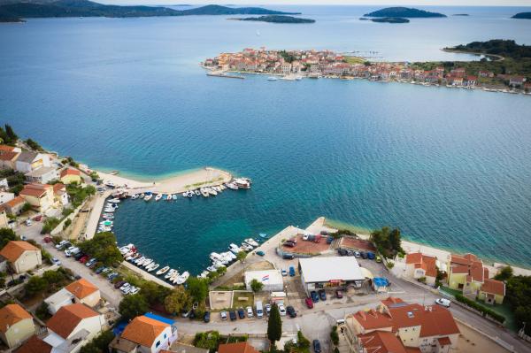 Az Apartman Marcela Brodaricában, Šibenik közelében található, 200 méterre a legközelebbi kavicsos strandtól, és gyönyörű kilátást nyújt a tengerre. A Brodarica sétányon számos kávézó, gyorsétterem, pizzéria, étterem és Dalmácia egyik legjobb (de kedvező árú) halétterme, a velünk szemben található Konoba Dalmare található. Šibenik városa mindössze 10 perces autóútra, a Krka Nemzeti Park pedig 20 perces autóútra található. A 4 csillagos Marcela Apartment szeretettel várja vendégeit 2019 májusa óta. 3 hálószoba, 3 fürdőszoba, minden szoba légkondicionált, 2 terasz és teljesen felszerelt konyha (edények és evőeszközök, tűzhely, elektromos főzőlap, hűtőszekrény, fagyasztó, mikrohullámú sütő, mosogatógép...). Az ingyenes extrák közé tartozik (ingyenes parkolás, ingyenes vezeték nélküli internet-hozzáférés, ingyenes légkondicionálás, ingyenes végső takarítás, ingyenes törölköző és ágynemű).