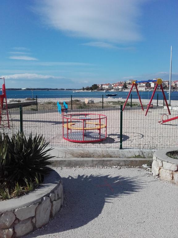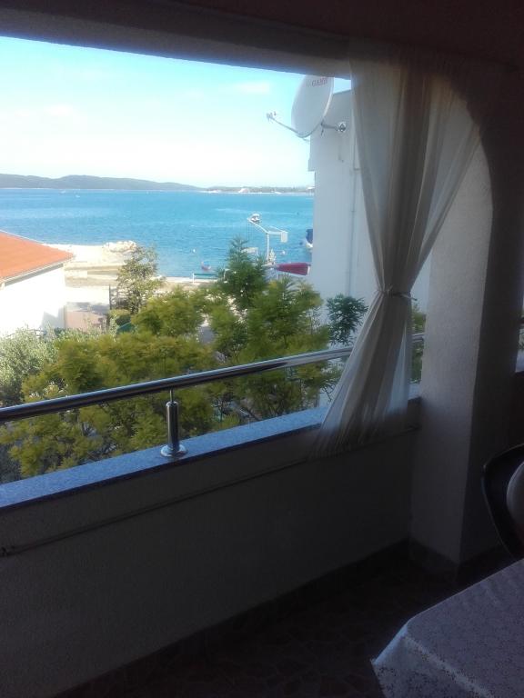 Családi ház Brodarica csendes részén, közvetlenül a tengerparton található. Távolság az első strandtól 50 m. Az ingatlan kiadó egy első emeleti apartman 6 fő részére. Az apartman a következőkből áll: konyha, 2 fürdőszoba és WC, 2 hálószoba, hálószoba franciaággyal és nappali franciaággyal. 22 m2-es erkély, gyönyörű kilátással a tengerre és a szigetekre. A vendégek használhatják az ingatlan melletti grillezőt, valamint korlátlan internet-hozzáférést és 3 biztonságos parkolóhelyet. Az idegenforgalmi adó és a légkondicionálás benne van az árban.