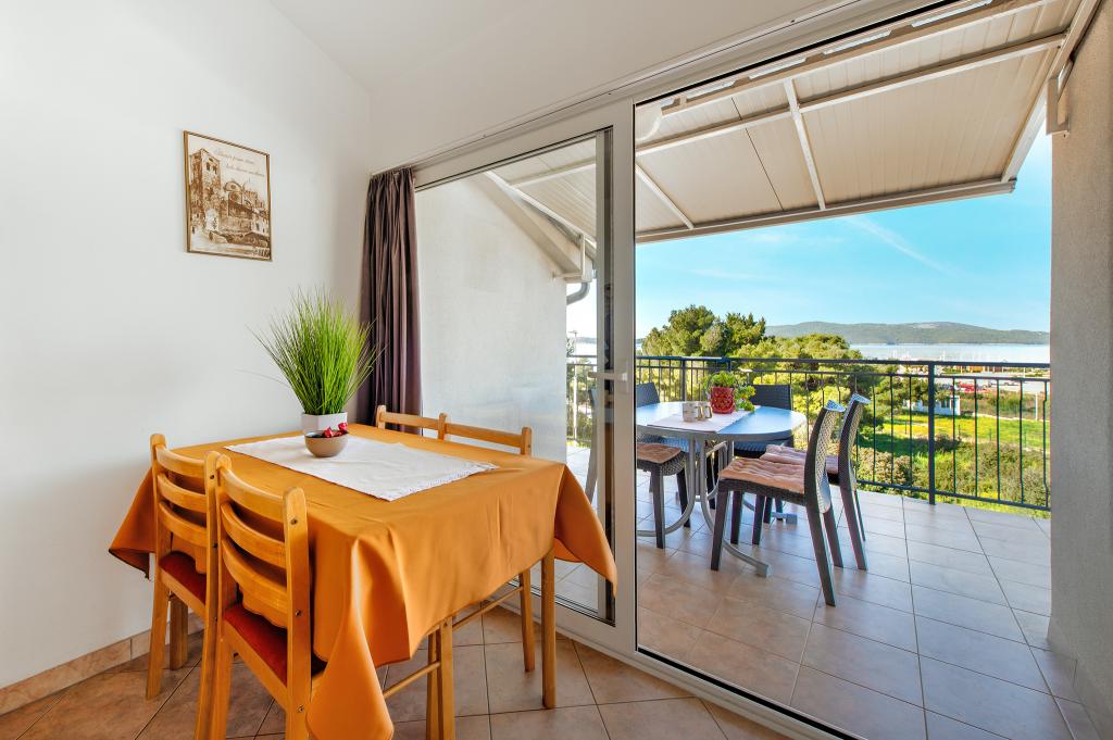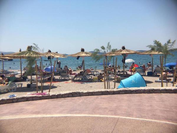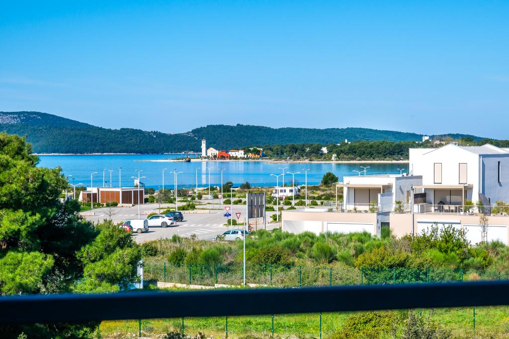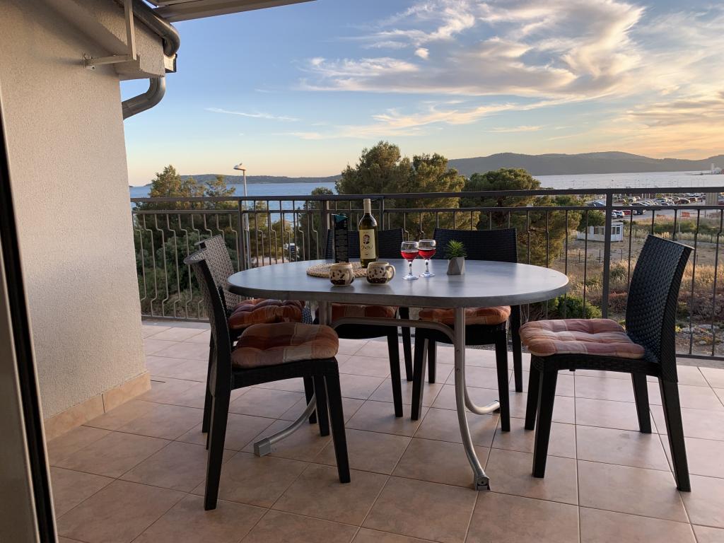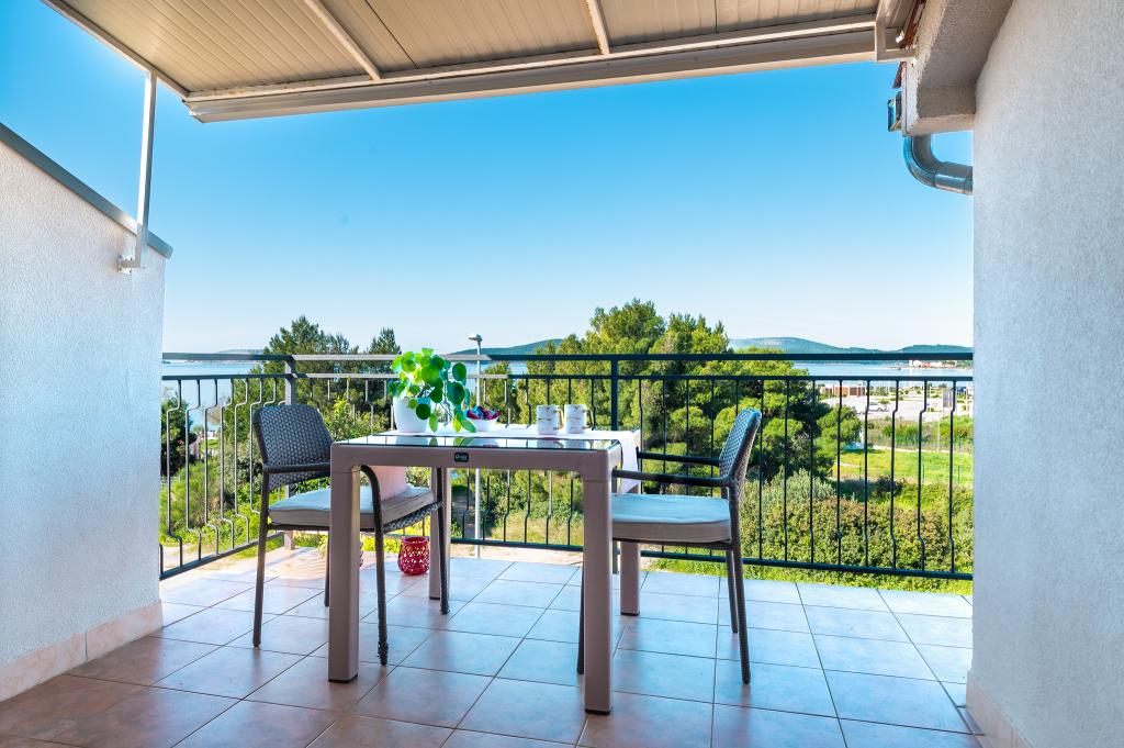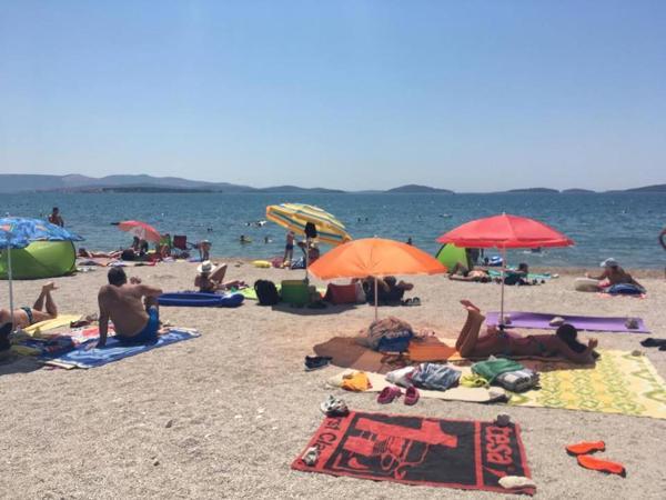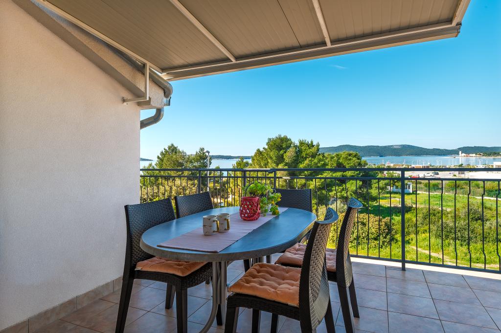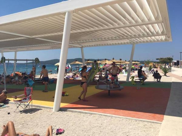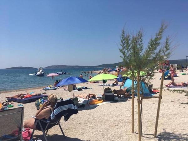 Apartman Brodarica gyönyörű részén. Kilátás a strand teraszáról. nagy parkoló. Grill az udvarban. A grill mellett a vacsoraasztal a kísérő létesítmények közelében található. Solaris, Sibenik Nemzeti Park Krka és Kornati oszcillációs központok, játszótér