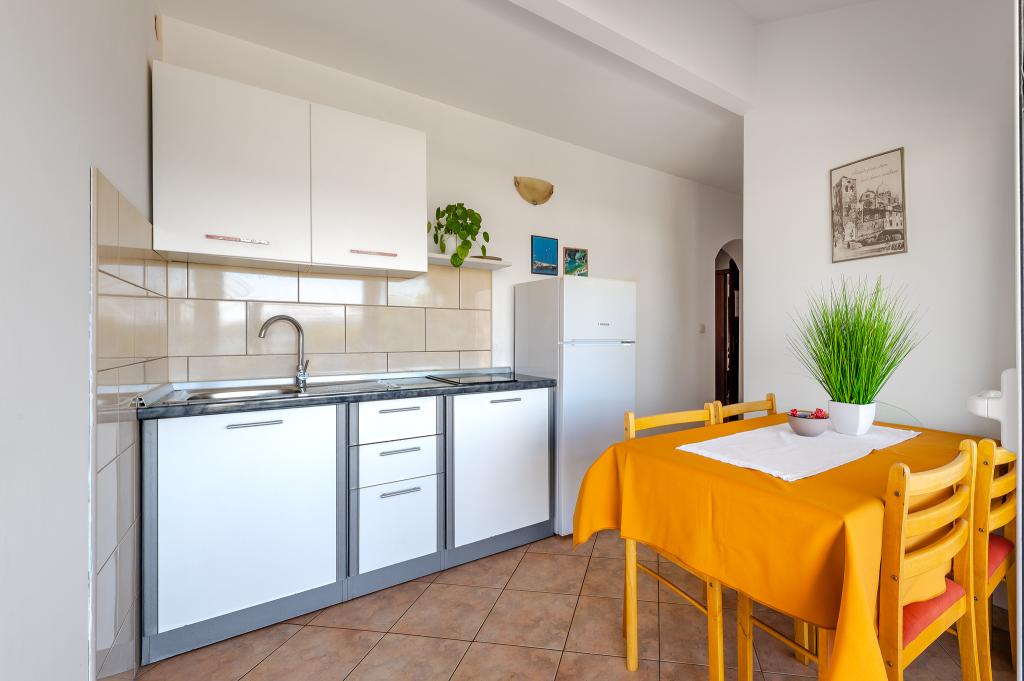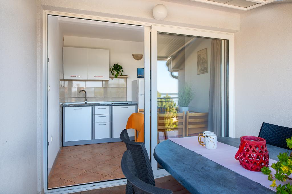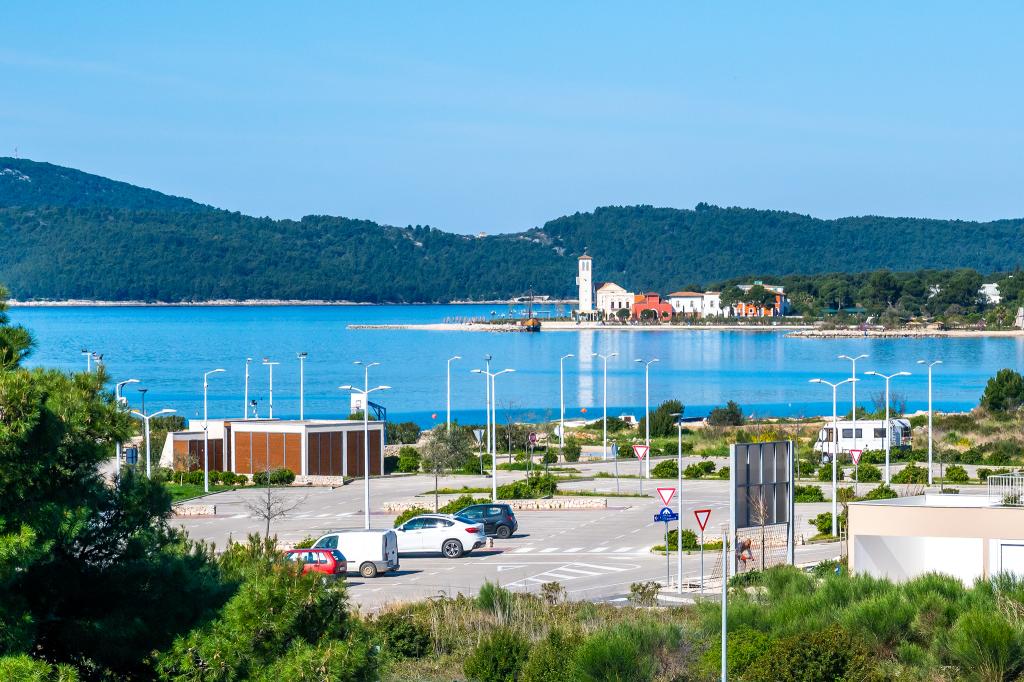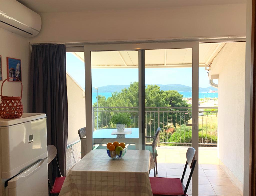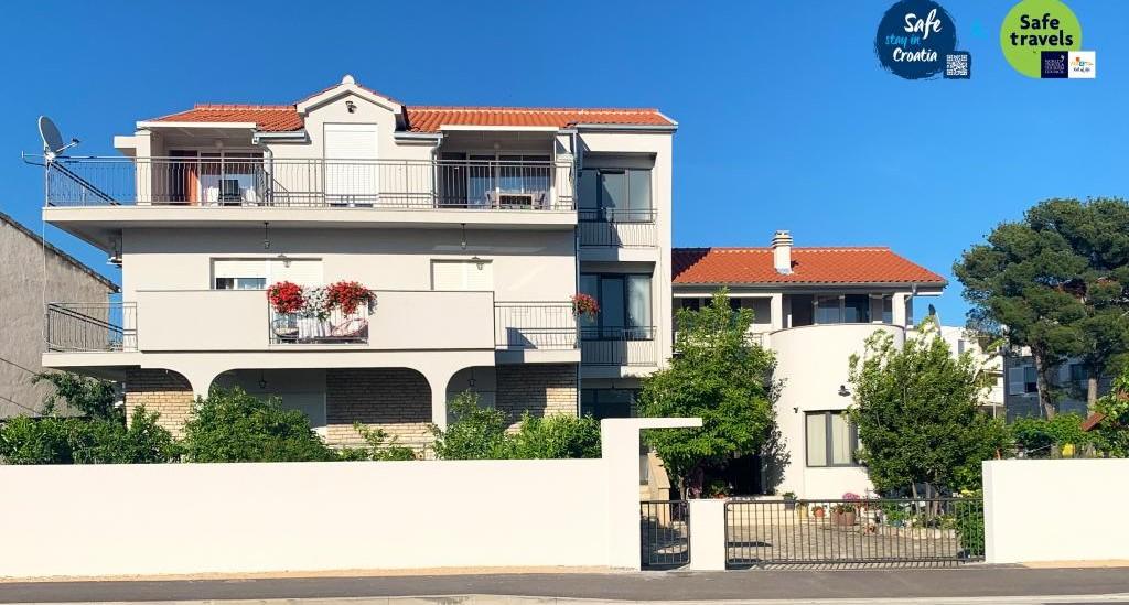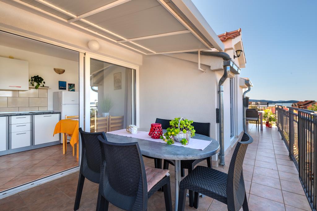 Apartman Brodarica gyönyörű részén. Kilátás a strand teraszáról. nagy parkoló. Grill az udvarban. A grill mellett a vacsoraasztal a kísérő létesítmények közelében található. Solaris, Sibenik Nemzeti Park Krka és Kornati oszcillációs központok, játszótér