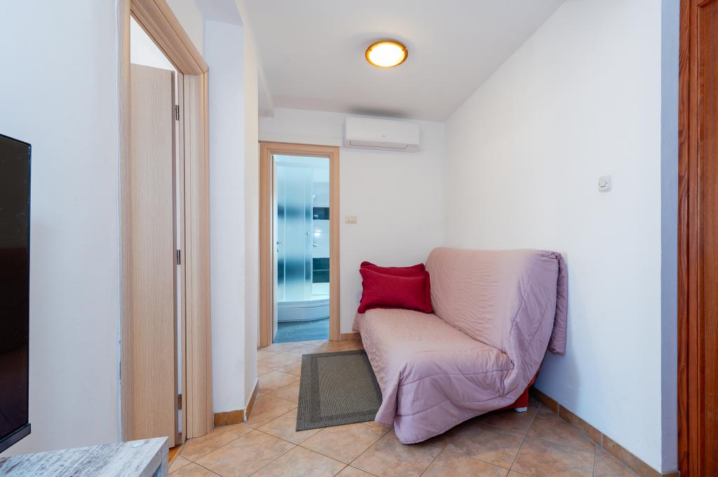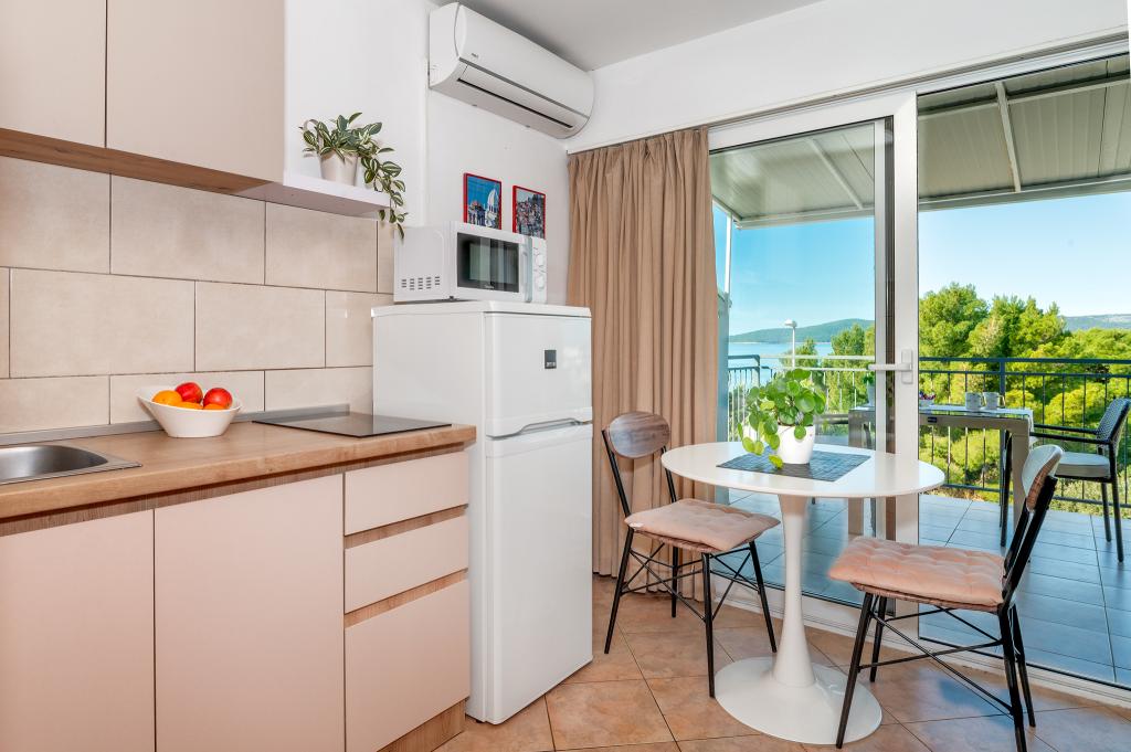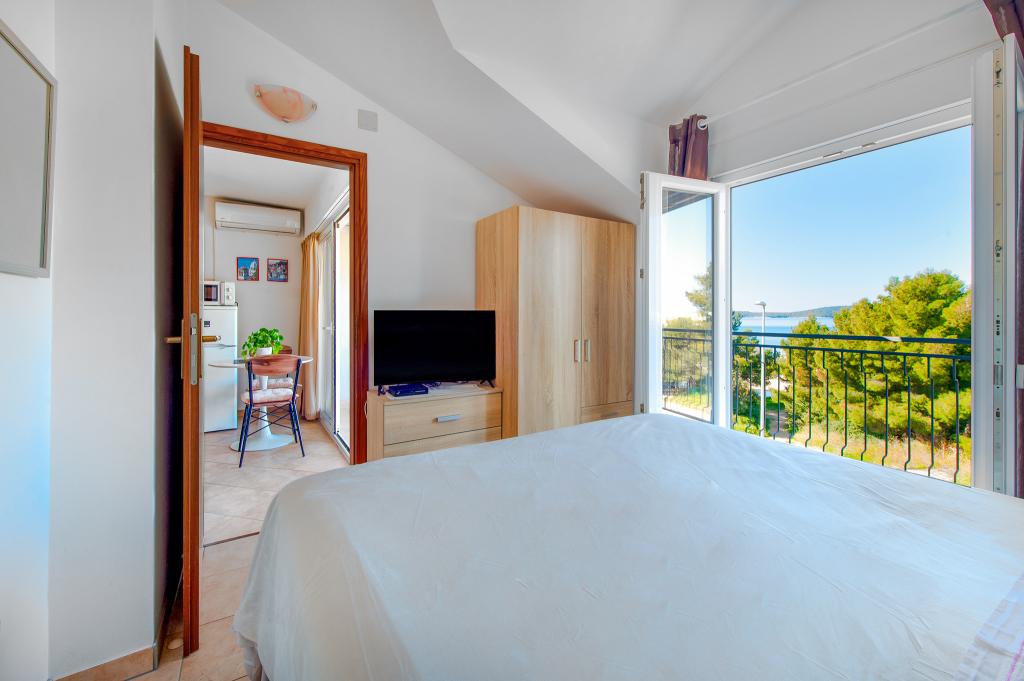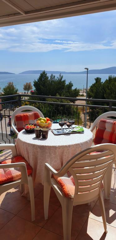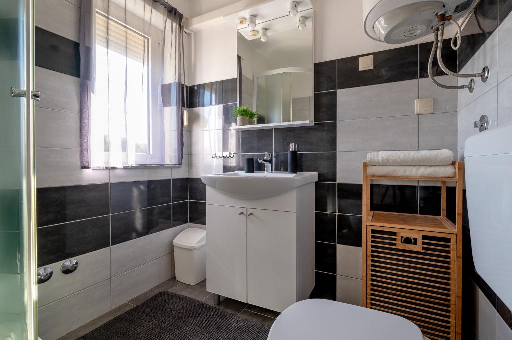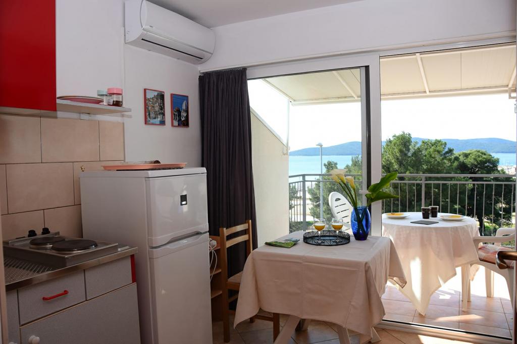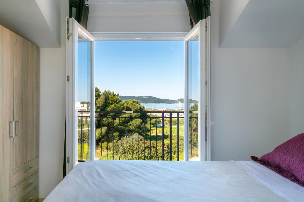 Apartman Brodarica gyönyörű részén. Kilátás a strand teraszáról. nagy parkoló. Grill az udvarban. A grill mellett a vacsoraasztal a kísérő létesítmények közelében található. Solaris, Sibenik Nemzeti Park Krka és Kornati oszcillációs központok, játszótér