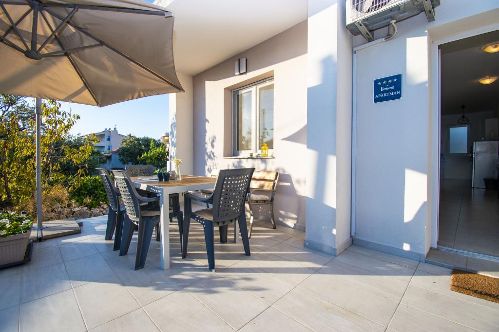 Kényelmes apartmanokat bérelünk 2+2 vagy 4+2, ideális egy csendes családi nyaraláshoz. Az apartmanok Brodaricában, egy terasszal és parkolóval rendelkező magánházban találhatók. Az egyik apartmanban egy hálószoba franciaággyal, egy fürdőszoba, valamint egy nappali konyhával és étkezővel rendelkezik. A második két hálószoba saját fürdőszobával és egy nappali konyhával és étkezővel. A konyhák főzőrésszel és elektromos sütővel, valamint az ételek elkészítéséhez és tálalásához szükséges edényekkel felszereltek. Az apartmanok légkondicionáltak, ingyenes internettel, minden ablakon szúnyogháló, őrzött parkoló az udvarban. A strand távolsága egy perc séta a saját udvarán keresztül. A közelben pékség, üzletek, éttermek, posta, klinika, buszpályaudvar található, ahonnan gyakori járatok indulnak Šibenikbe.