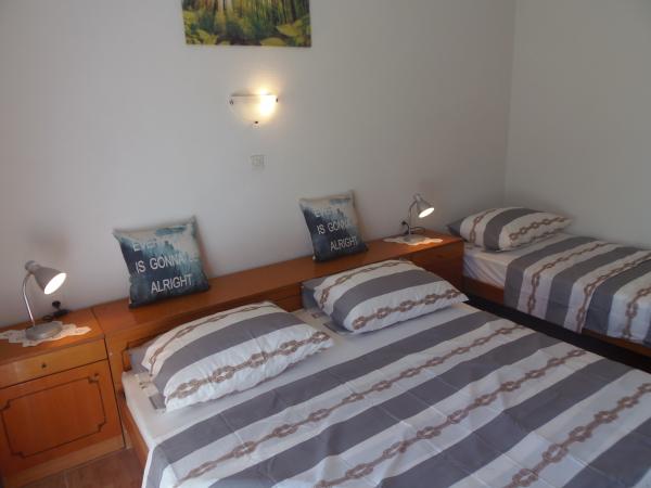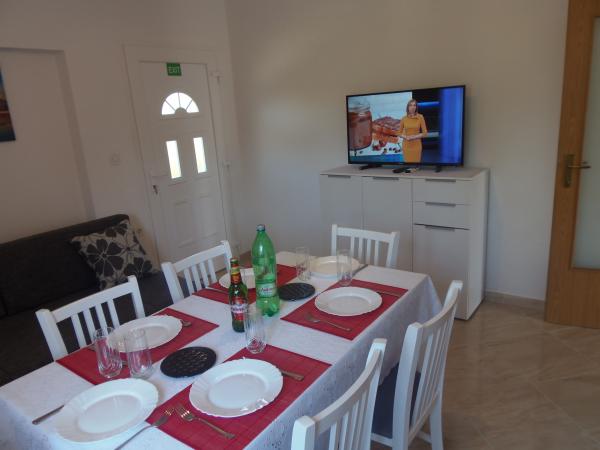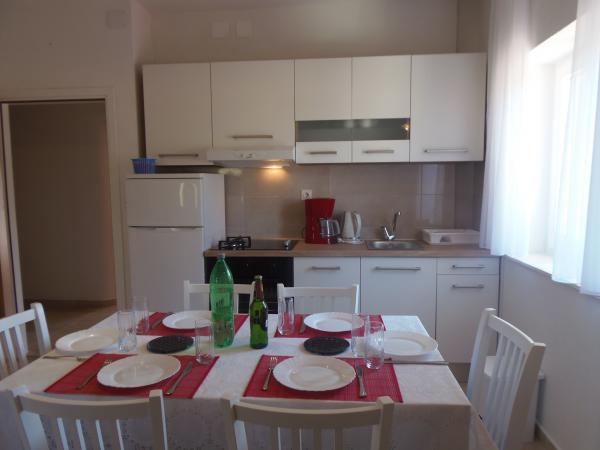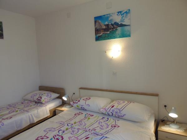 Nagyszerű apartman, mindennel felszerelve, amire szükség van a kényelmes nyaraláshoz. Még a parkolót is védik napvédelem. Ez egy csendes környéken. A házigazdák nagyon barátságosak. Minden dicséret a Milka Brodarica apartmanok iránt.
