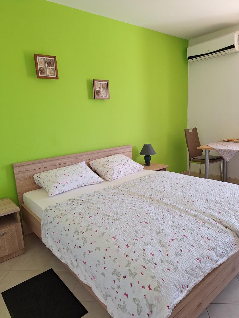 A társasház első emeletén erdőre és zöldre néző erkély. Békés és kényelmes alvás. A közelben található teniszpálya, kosárlabdapálya, kerékpárutak, sétányok, valamint Horvátország legszebb és legnagyobb olajfaligetje. Kedvenc családi üdülőhely a természet szerelmeseinek is. Természetes strandok, kikötő, grill, éttermek, üzletek, pékség, cukrászda és posta található az apartman közvetlen közelében.